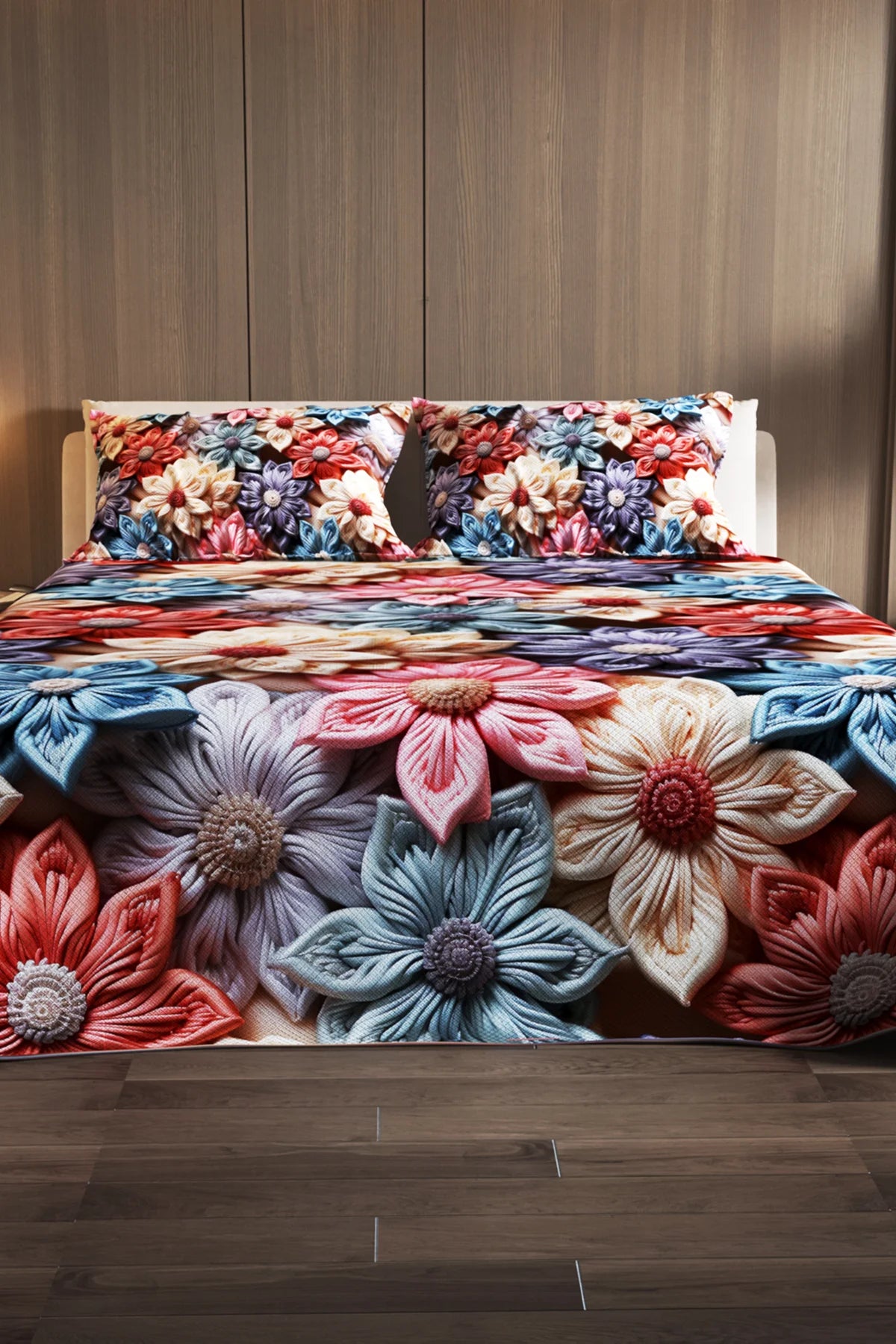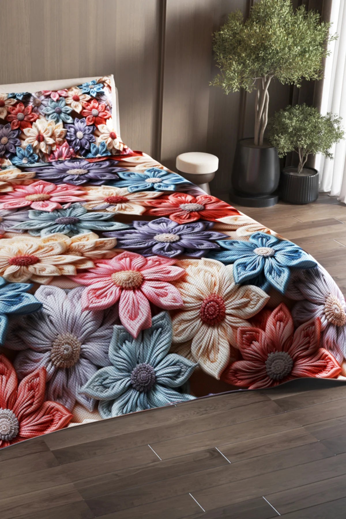 %100 Pamuk Çift Kişilik Pike Takımı Yatak Örtüsü Özel Dokuma Candle Motifs
