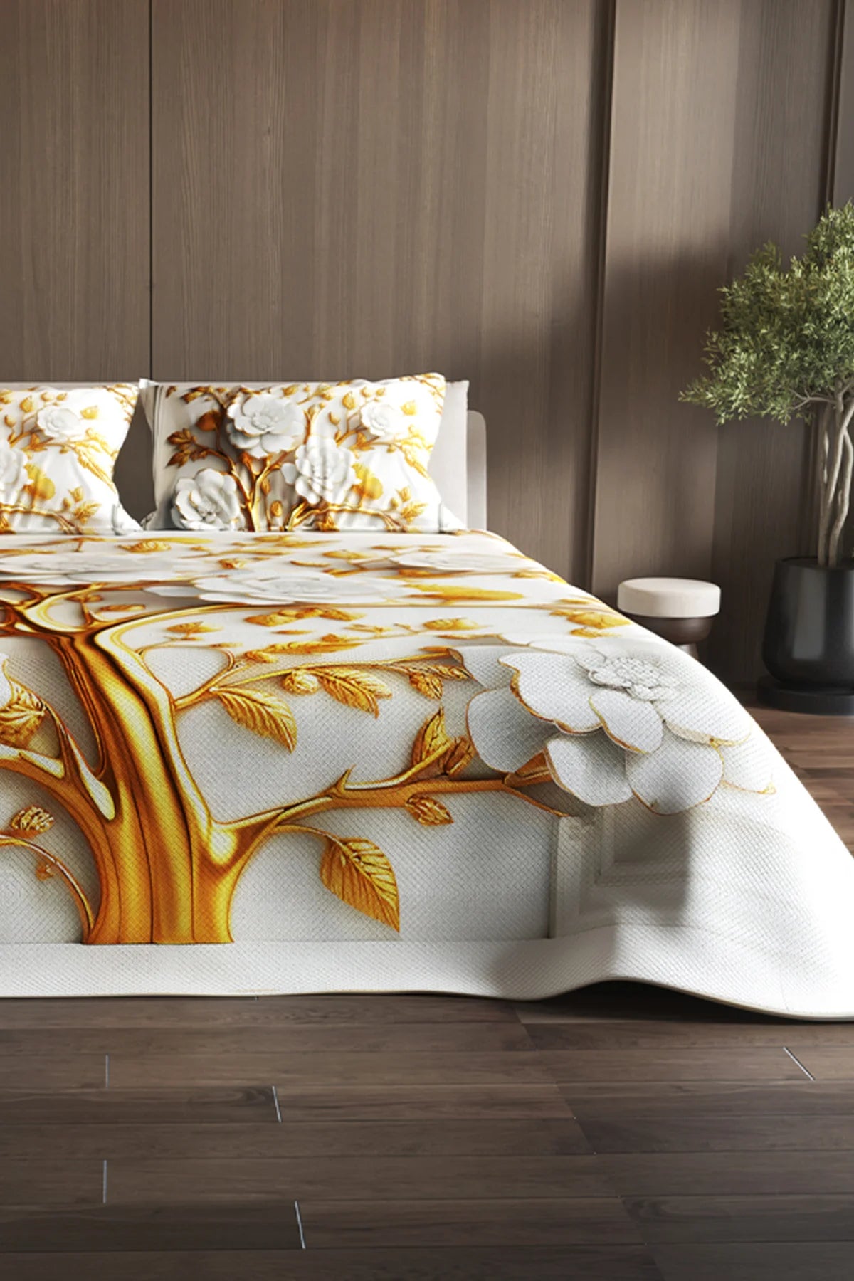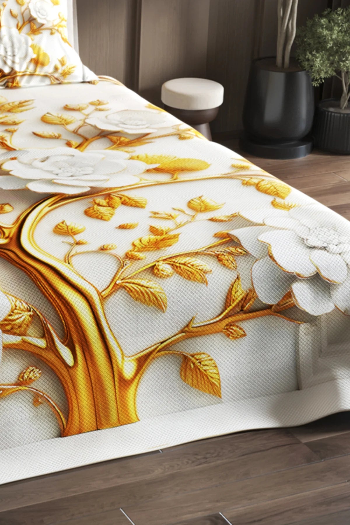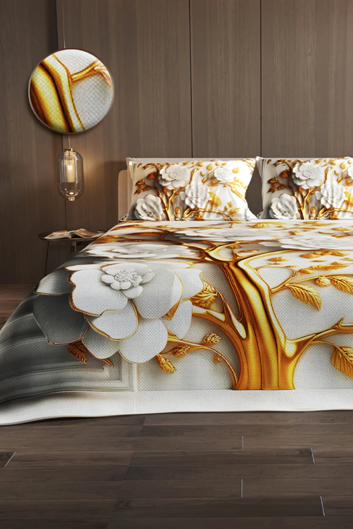 %100 Pamuk Çift Kişilik Pike Takımı Yatak Örtüsü Özel Dokuma Dore