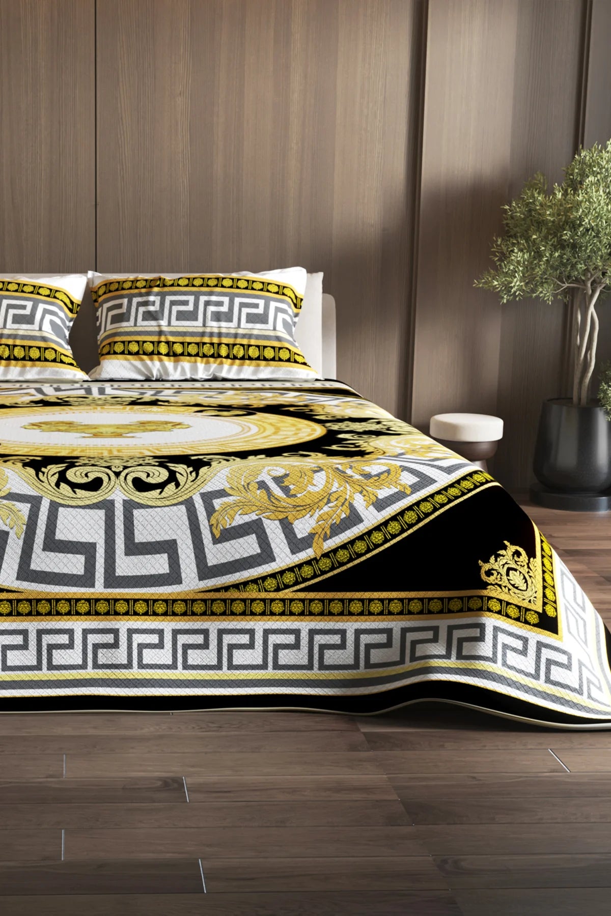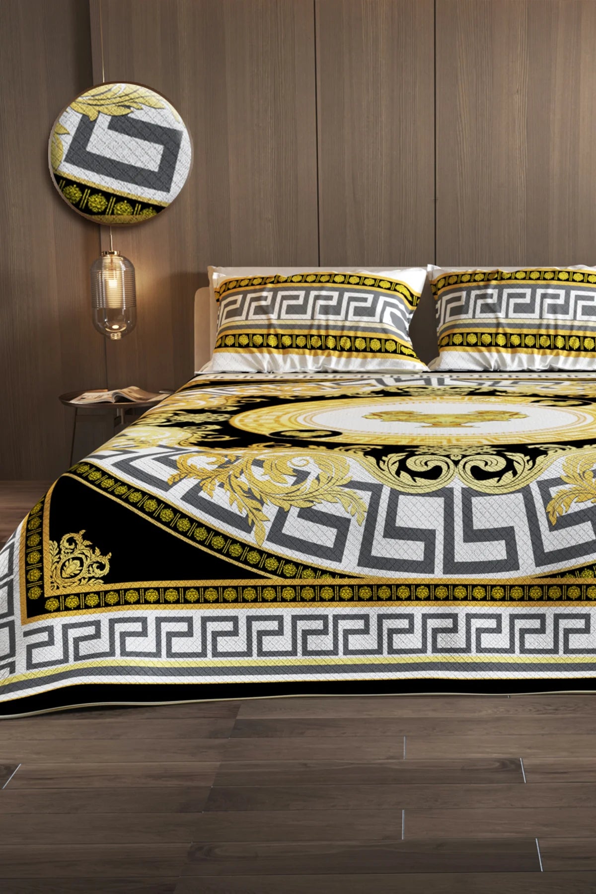 %100 Pamuk Çift Kişilik Pike Takımı Yatak Örtüsü Özel Dokuma Medusa