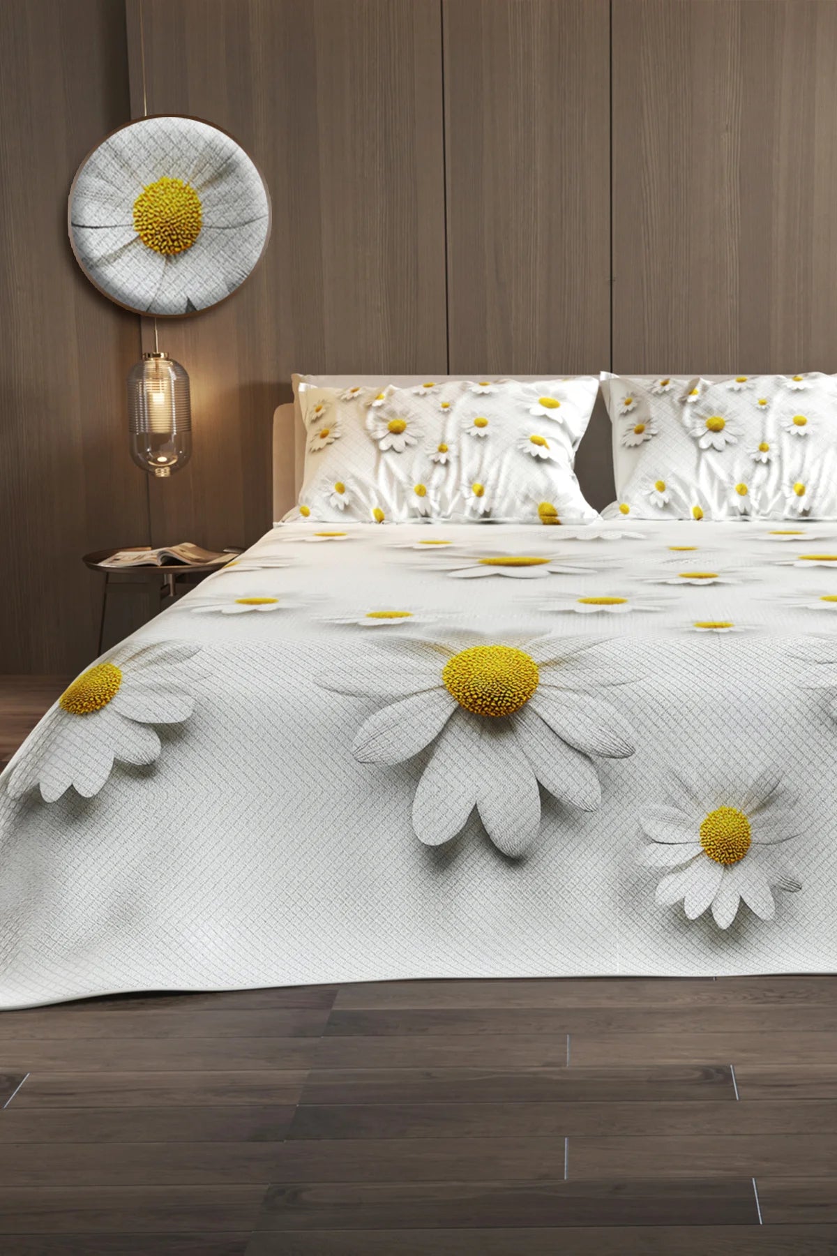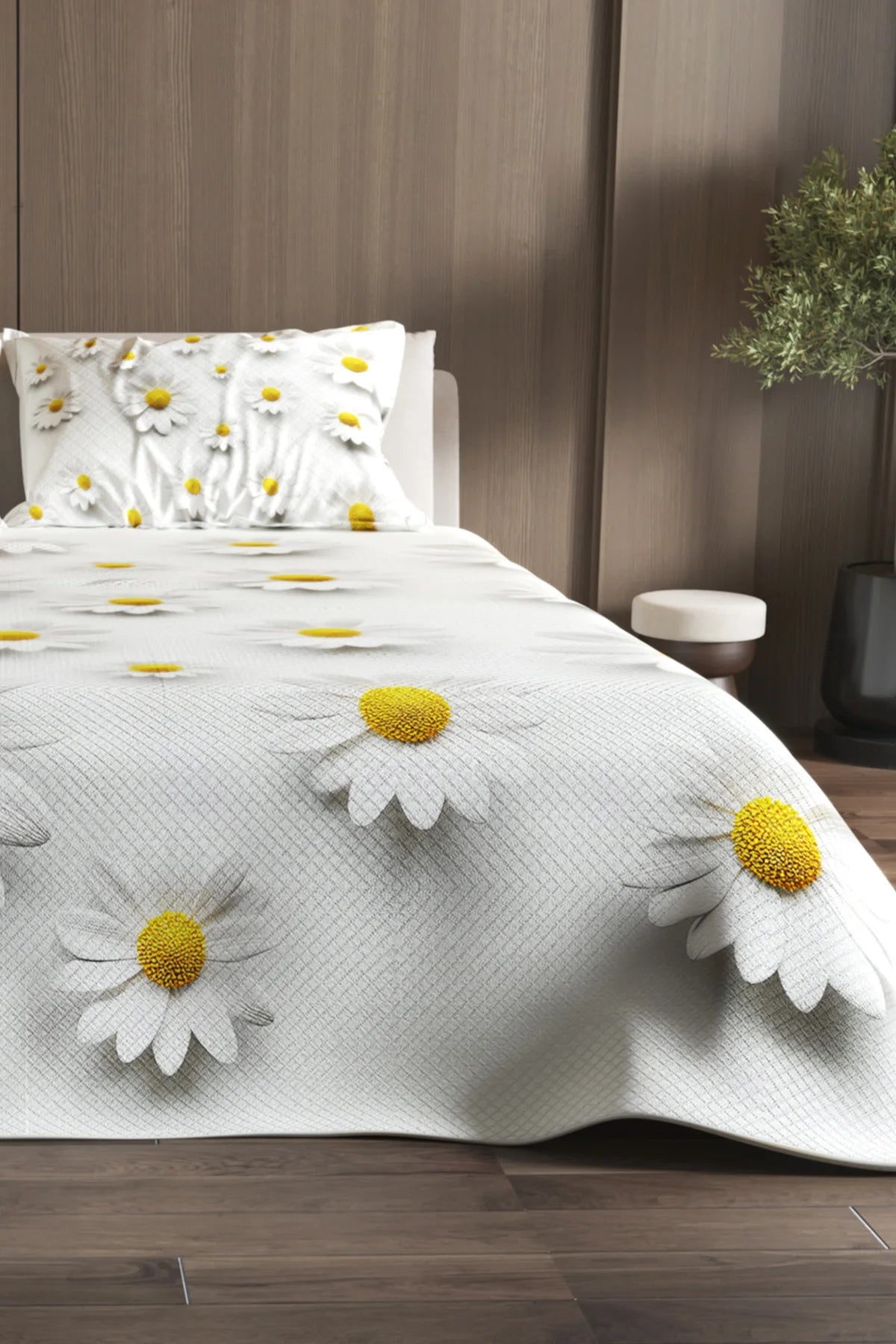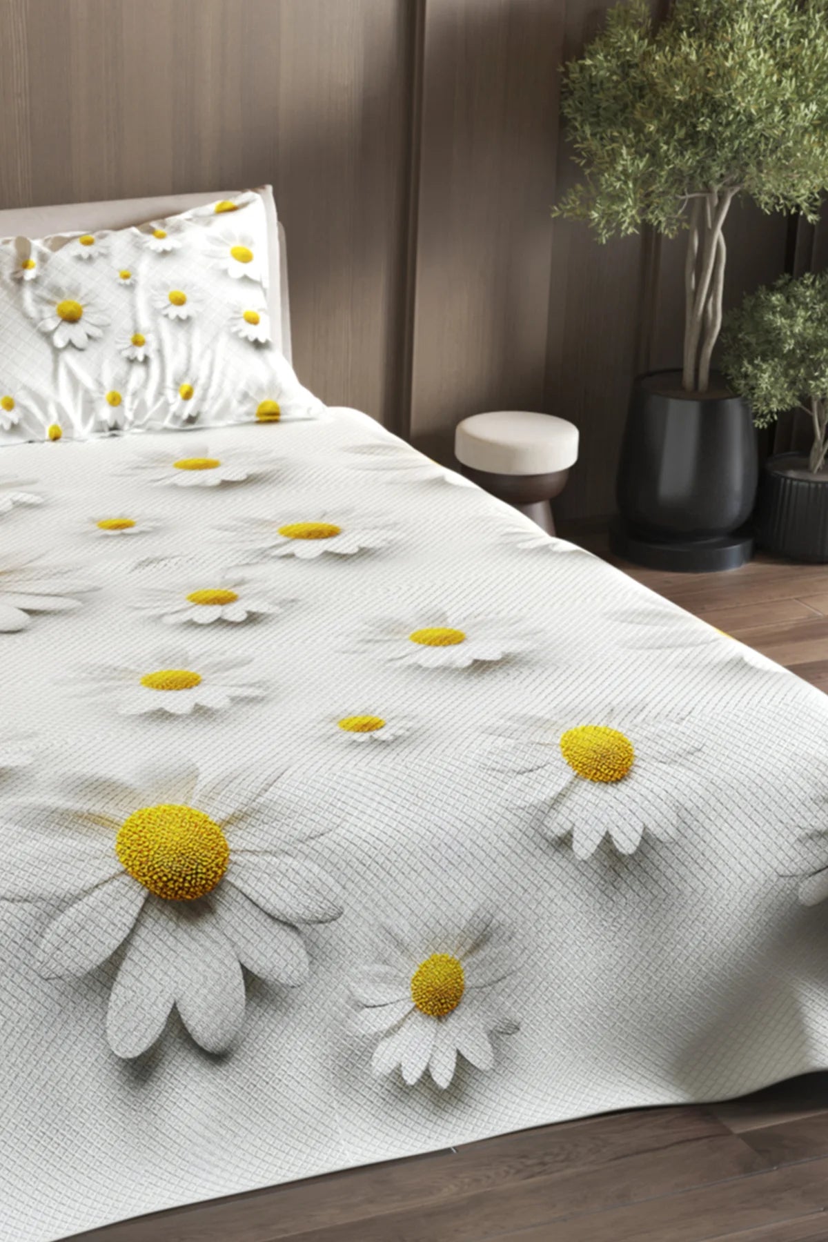 %100 Pamuk Çift Kişilik Pike Takımı Yatak Örtüsü Özel Dokuma Papatya