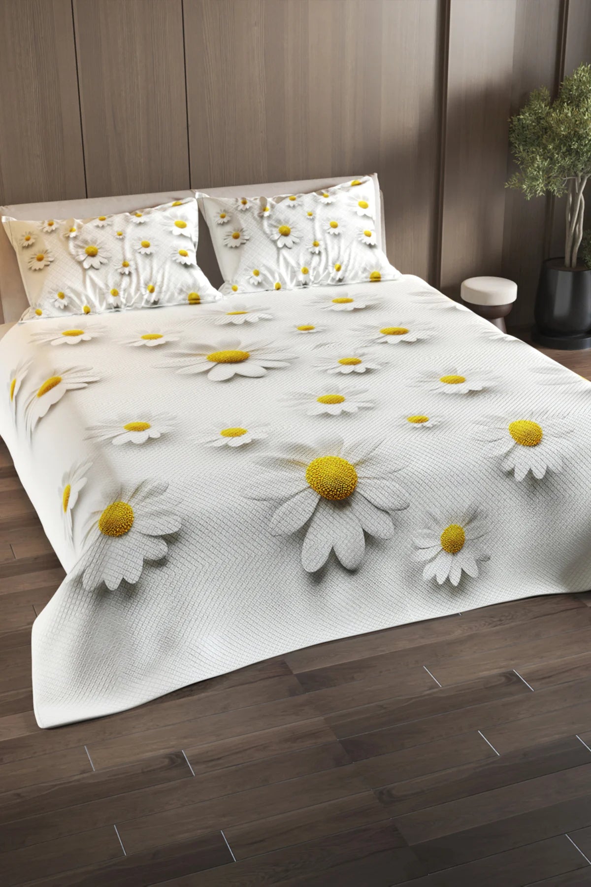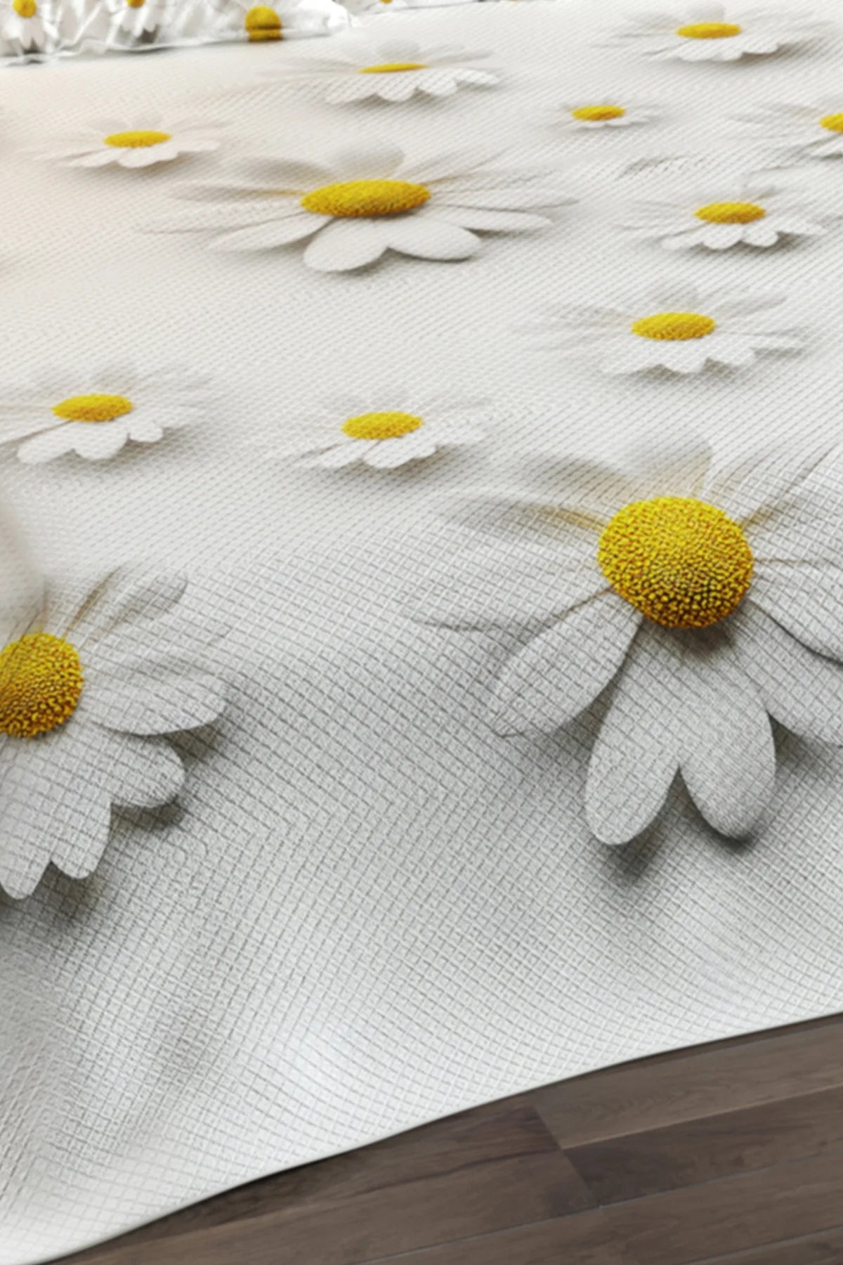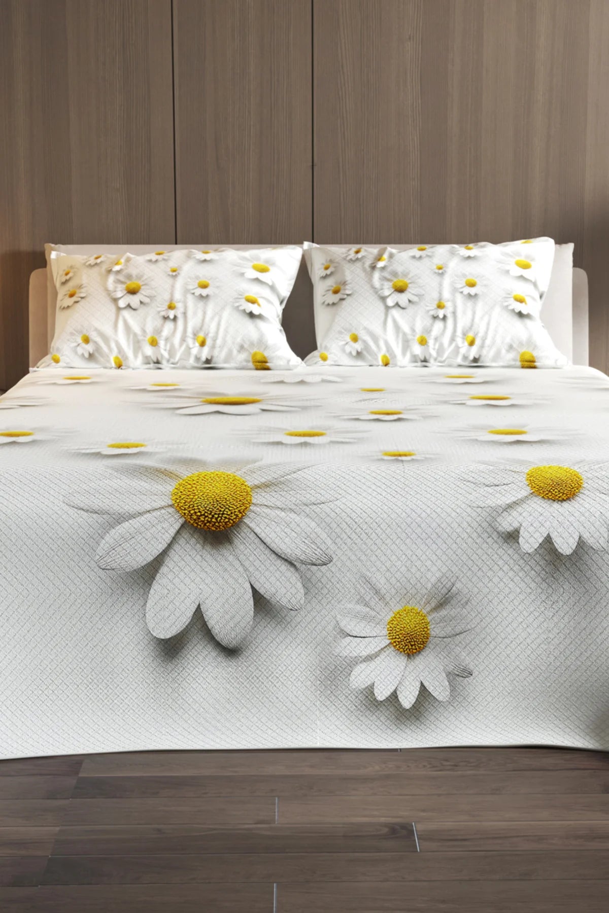 %100 Pamuk Çift Kişilik Pike Takımı Yatak Örtüsü Özel Dokuma Papatya