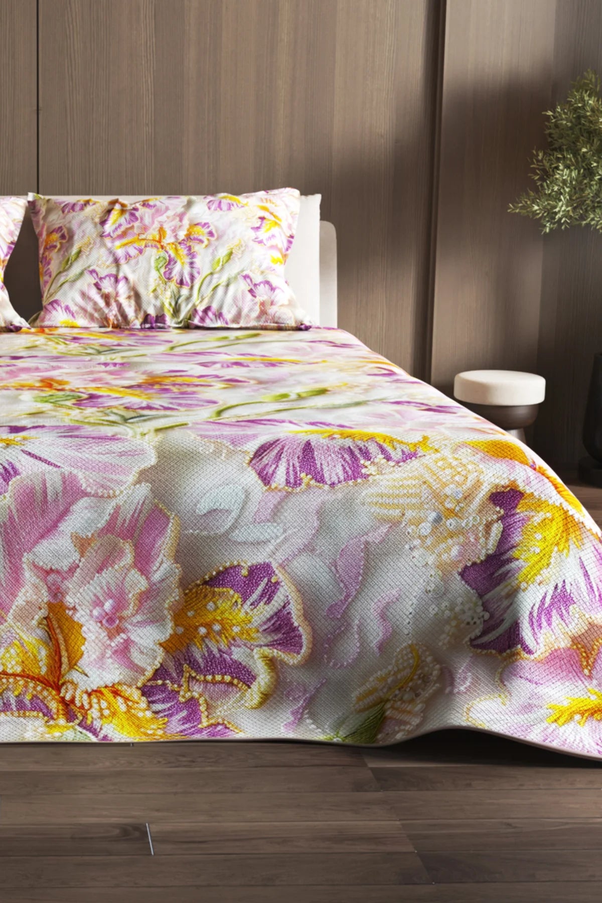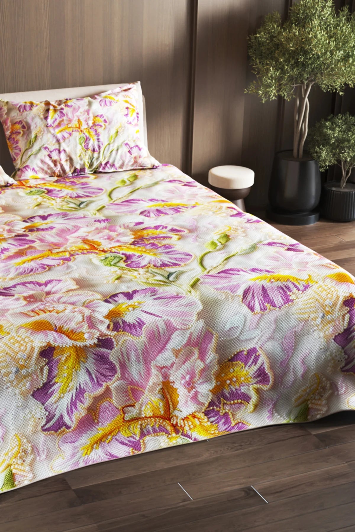 %100 Pamuk Çift Kişilik Pike Takımı Yatak Örtüsü Özel Dokuma Perla