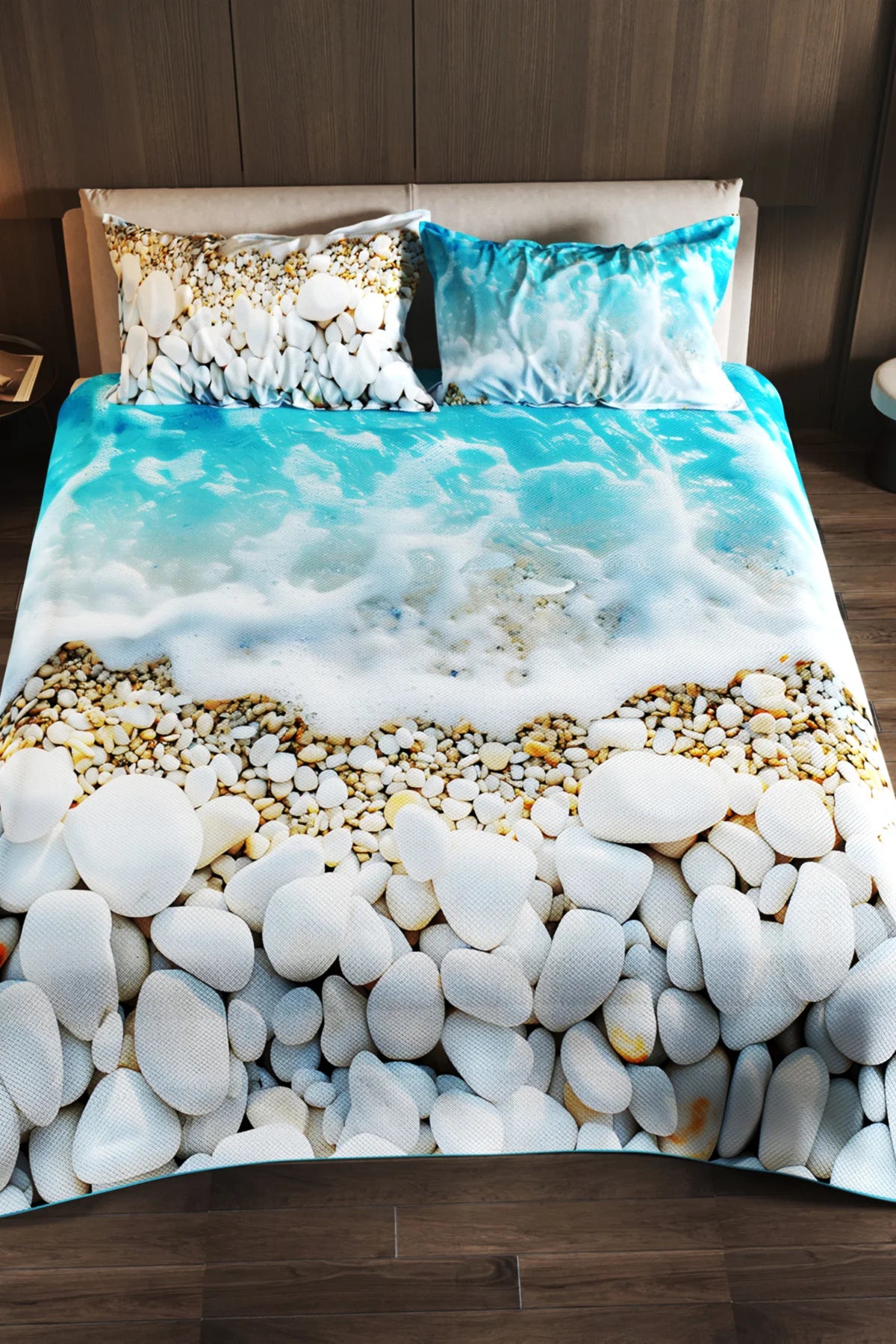 %100 Pamuk Çift Kişilik Pike Takımı Yatak Örtüsü Özel Dokuma Sahil