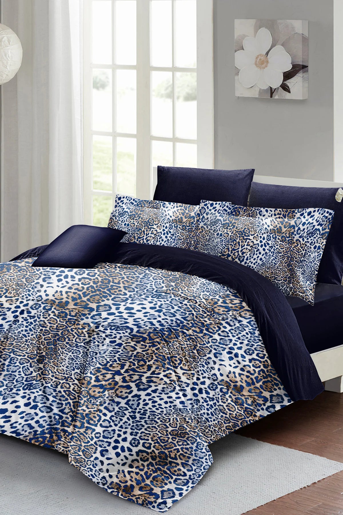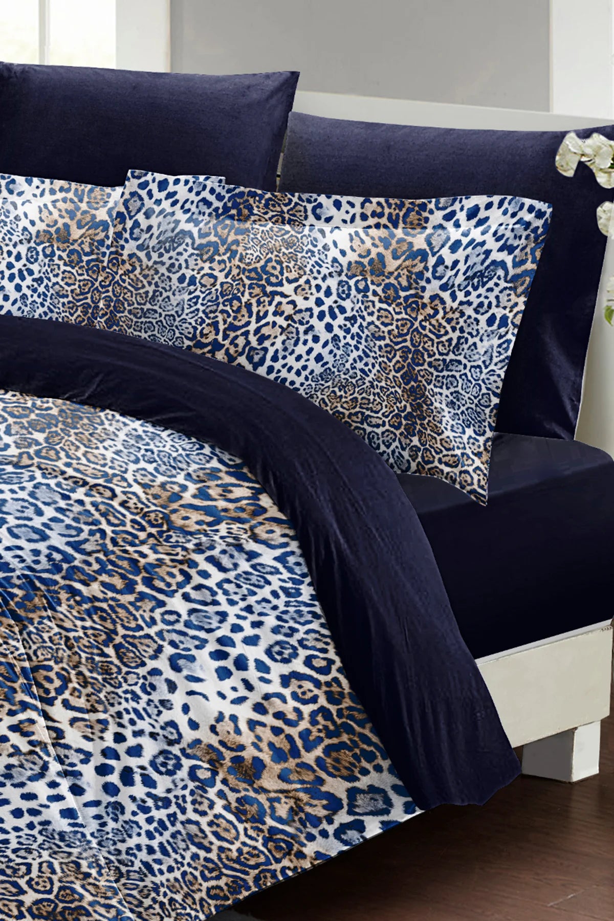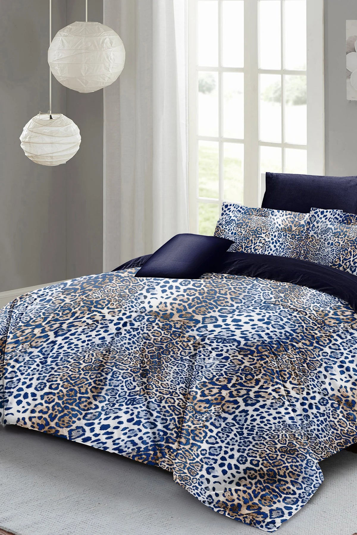 Çift Kişilik 3D Nevresim Takımı Pamuk Saten Blue Leopard