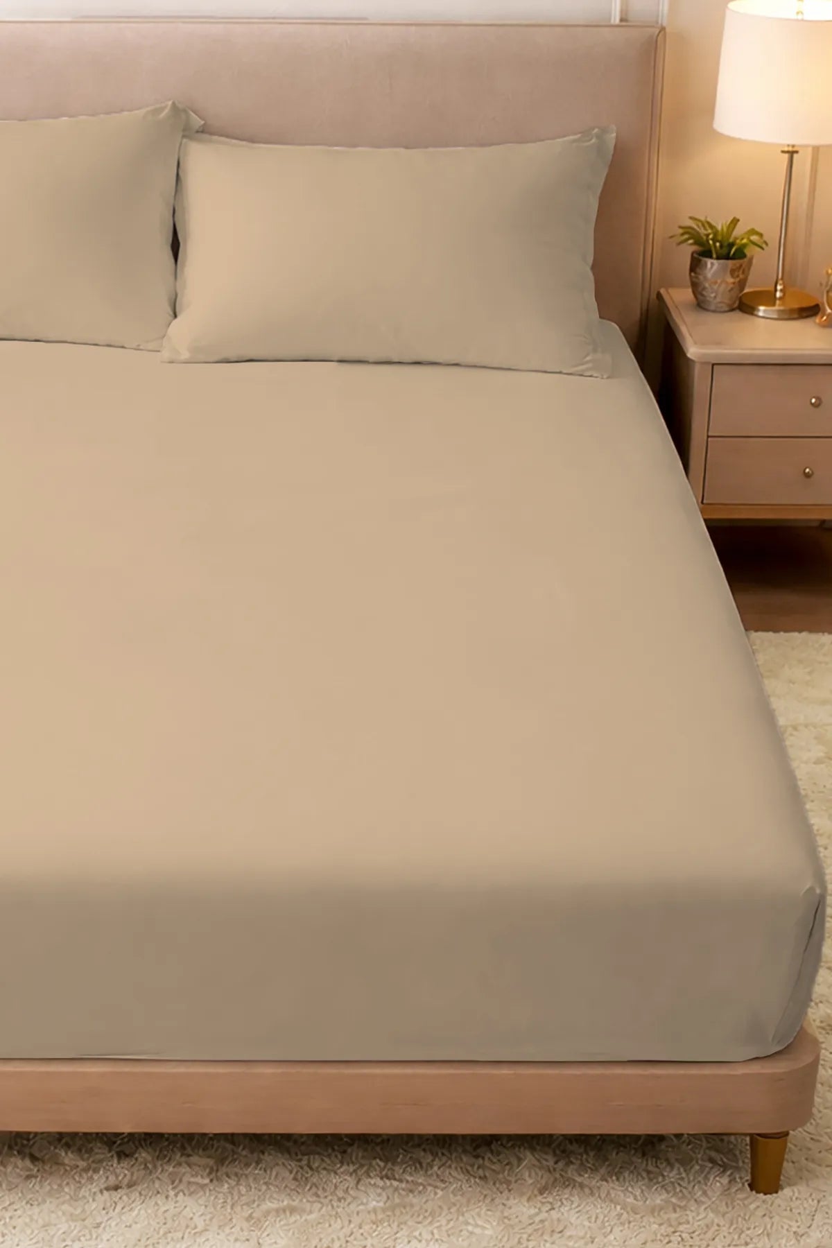 Lastikli Çarşaf %100 Pamuk Oeko-tex® Sertifikalı (Nevresim Kumaşından Üretilmiştir) 57 Tel Bej