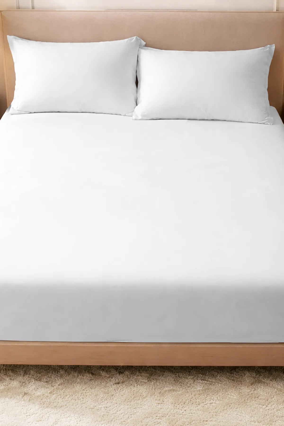 Lastikli Çarşaf %100 Pamuk Oeko-tex® Sertifikalı (Nevresim Kumaşından Üretilmiştir) 57 Tel Beyaz