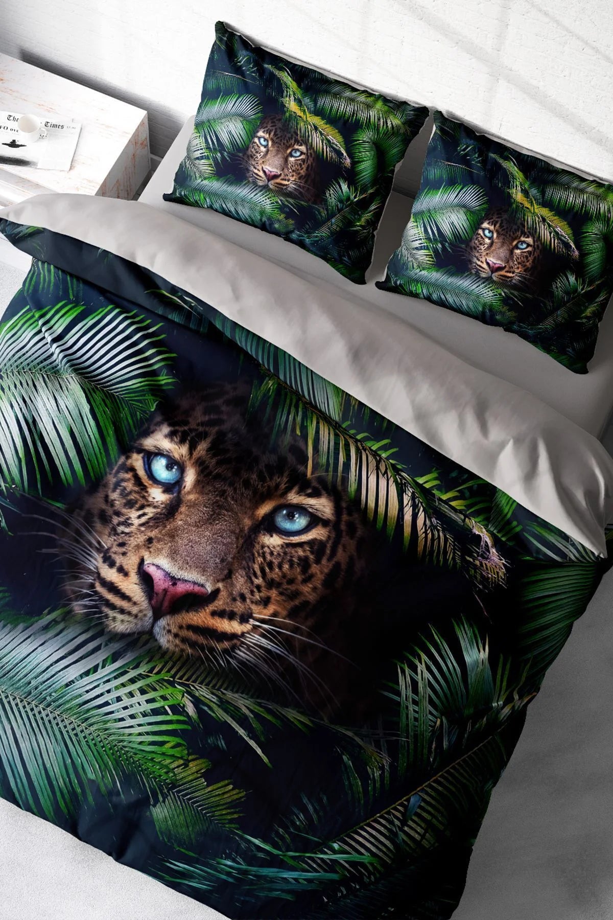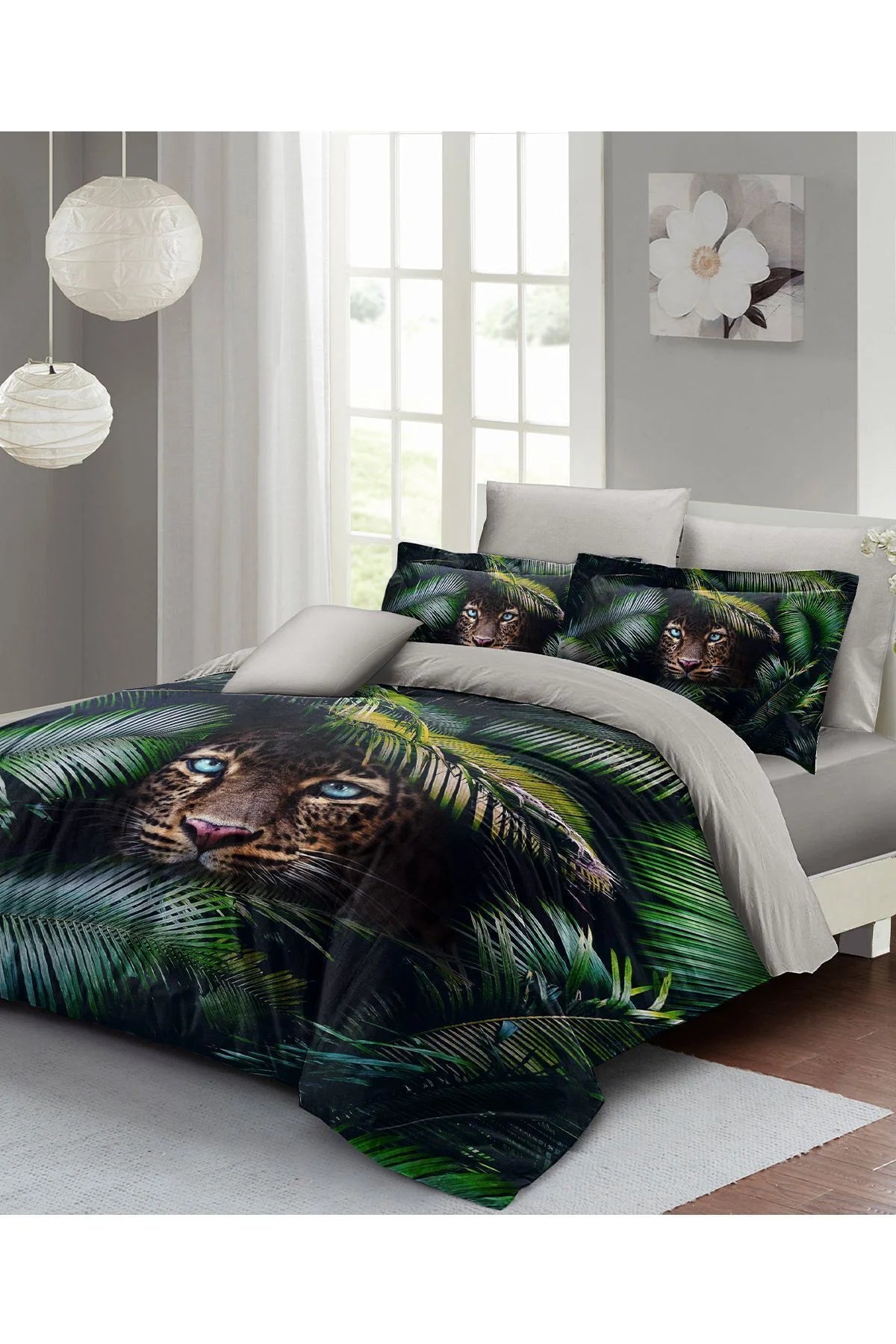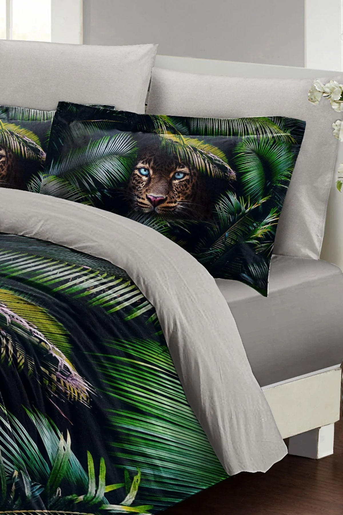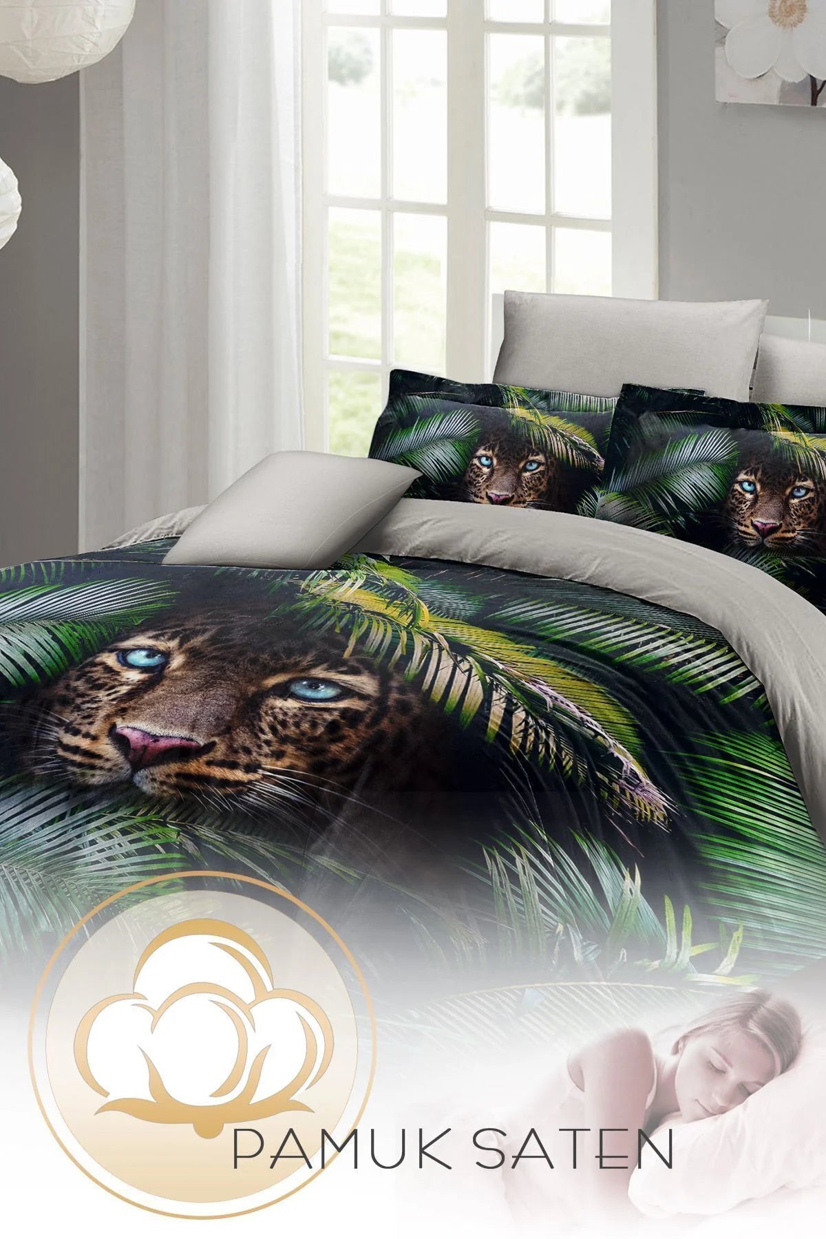 Leopar Çift Kişilik Nevresim Takımı Özel Dokuma Pamuk Saten Jungle Leopard