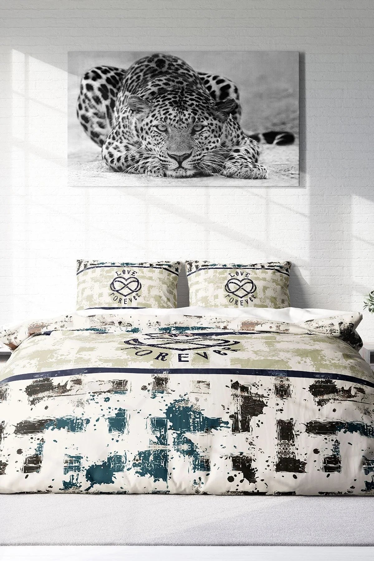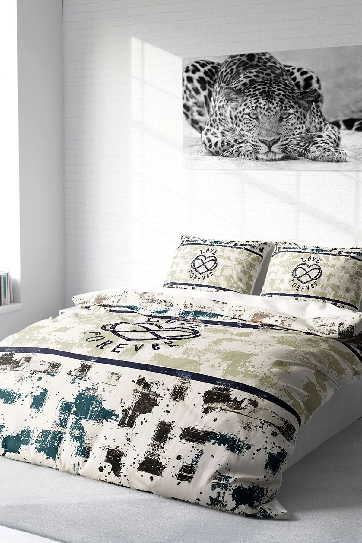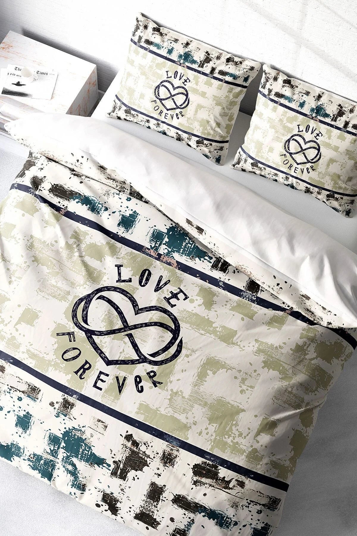 Nevresim Takımı Pamuk Saten Çift Kişilik 3D Digital Love Forever