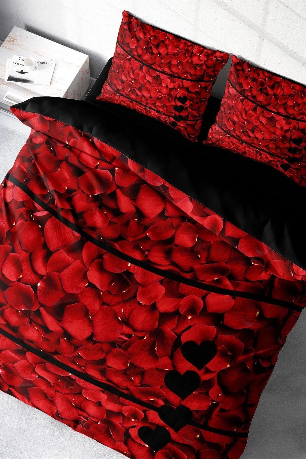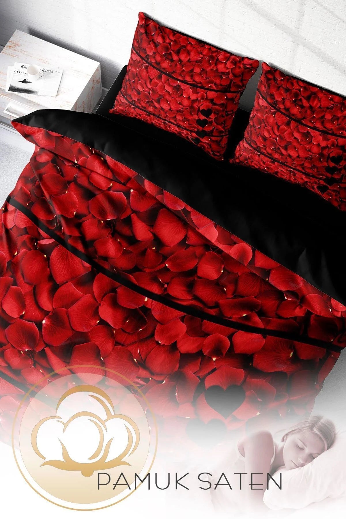 Nevresim Takımı Pamuk Saten Çift Kişilik 3D Digital Rose Feather