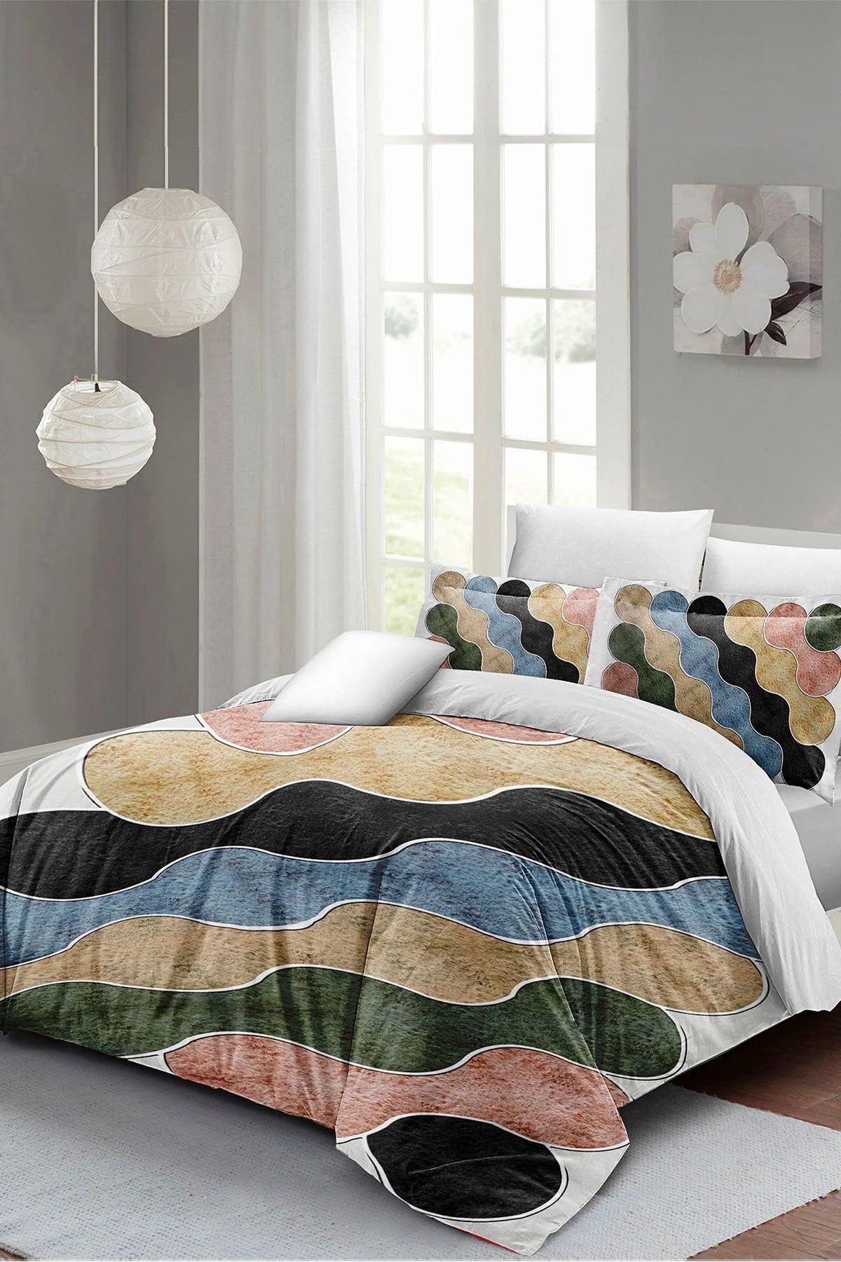 Nevresim Takımı Pamuk Saten Çift Kişilik 3D Digital Row Colors