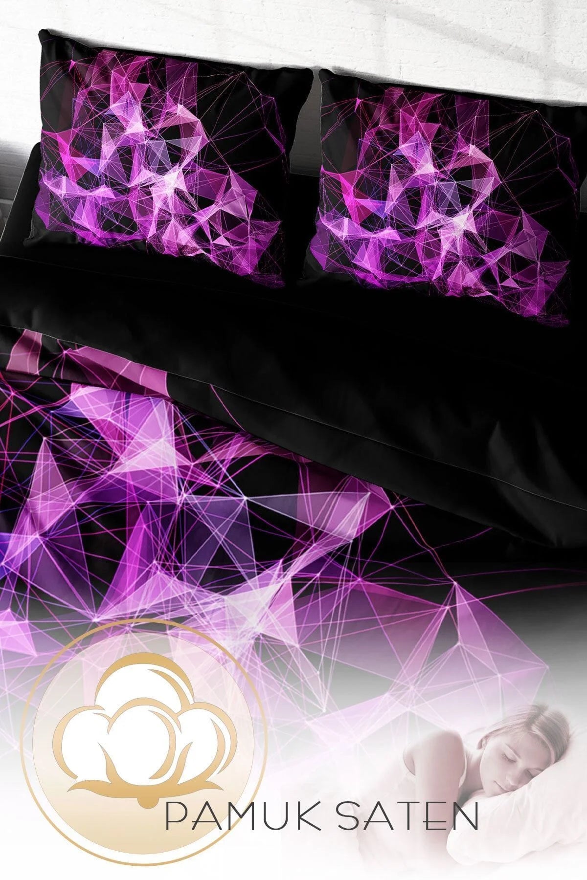 Pamuk Saten Çift Kişilik Nevresim Takımı Özel Dokuma 3D Dijital Purple Diamonds