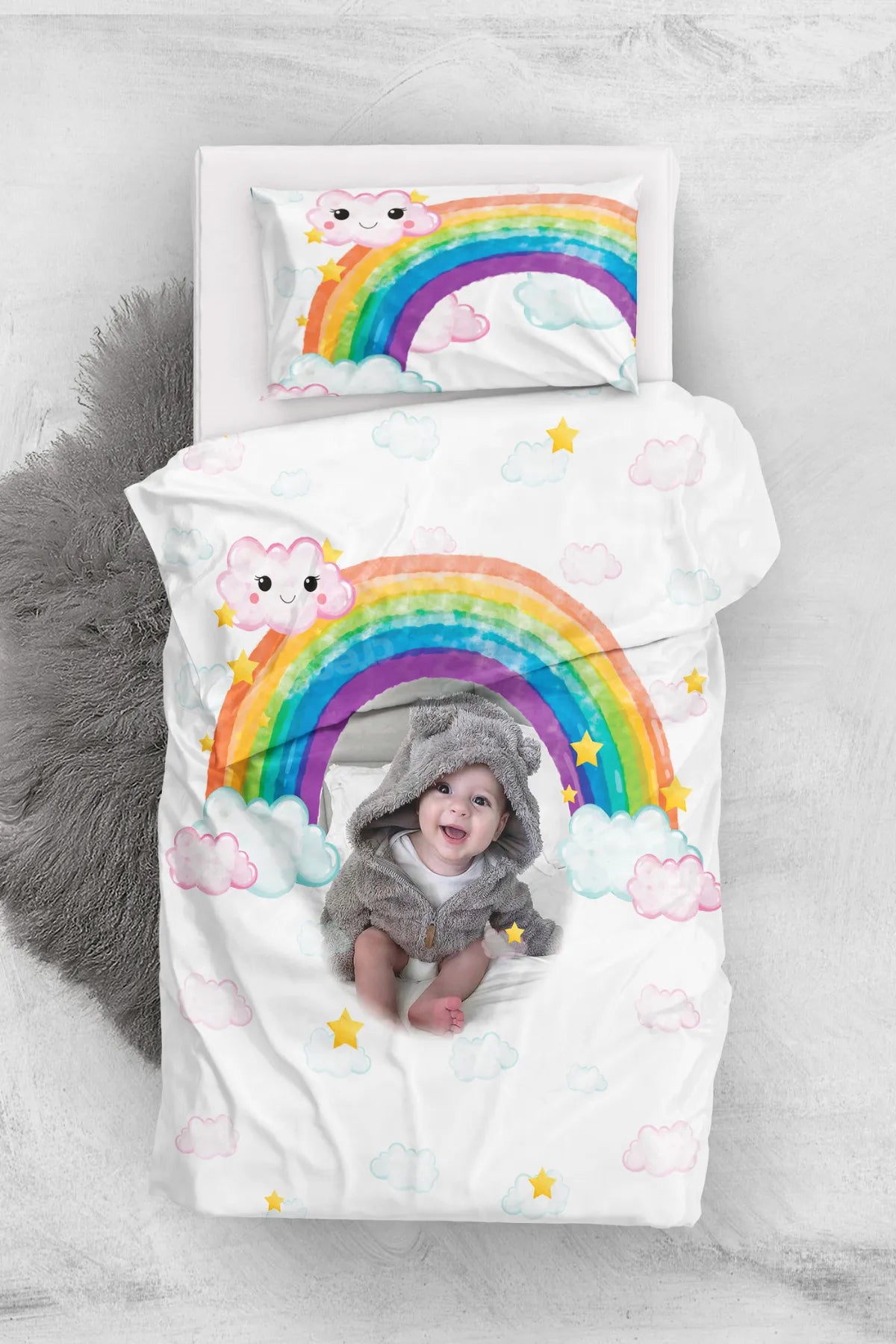 Percale Premium Kişiye Özel Resimli Bebek Nevresim Takımı - Çok Renkli