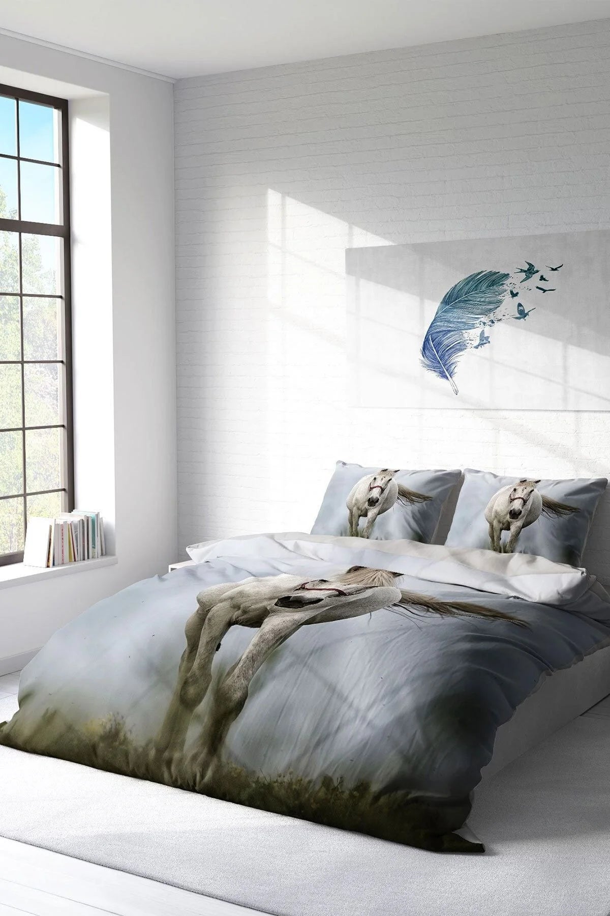 Rebel Horse Naturel Çift Kişilik Nevresim Takımı