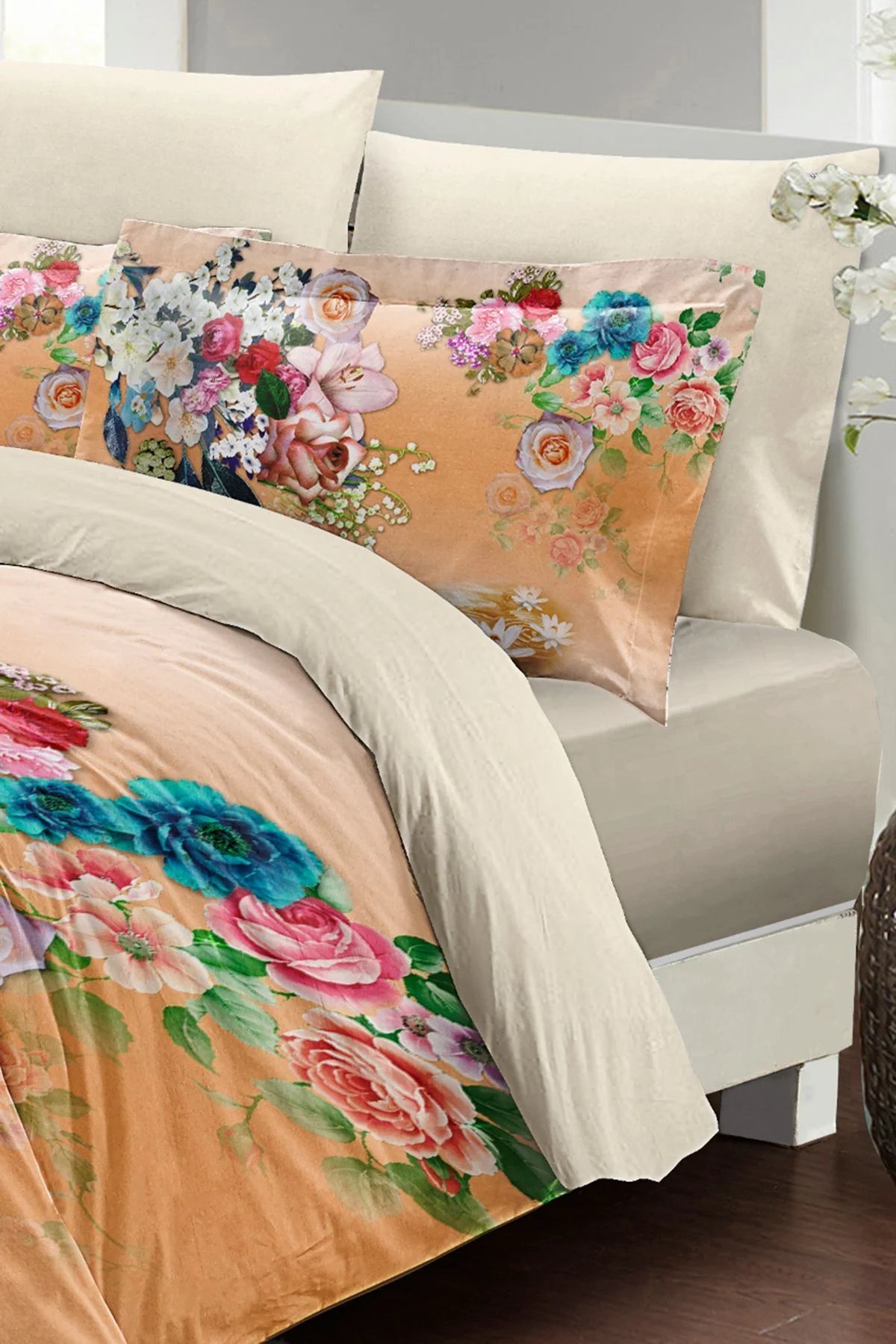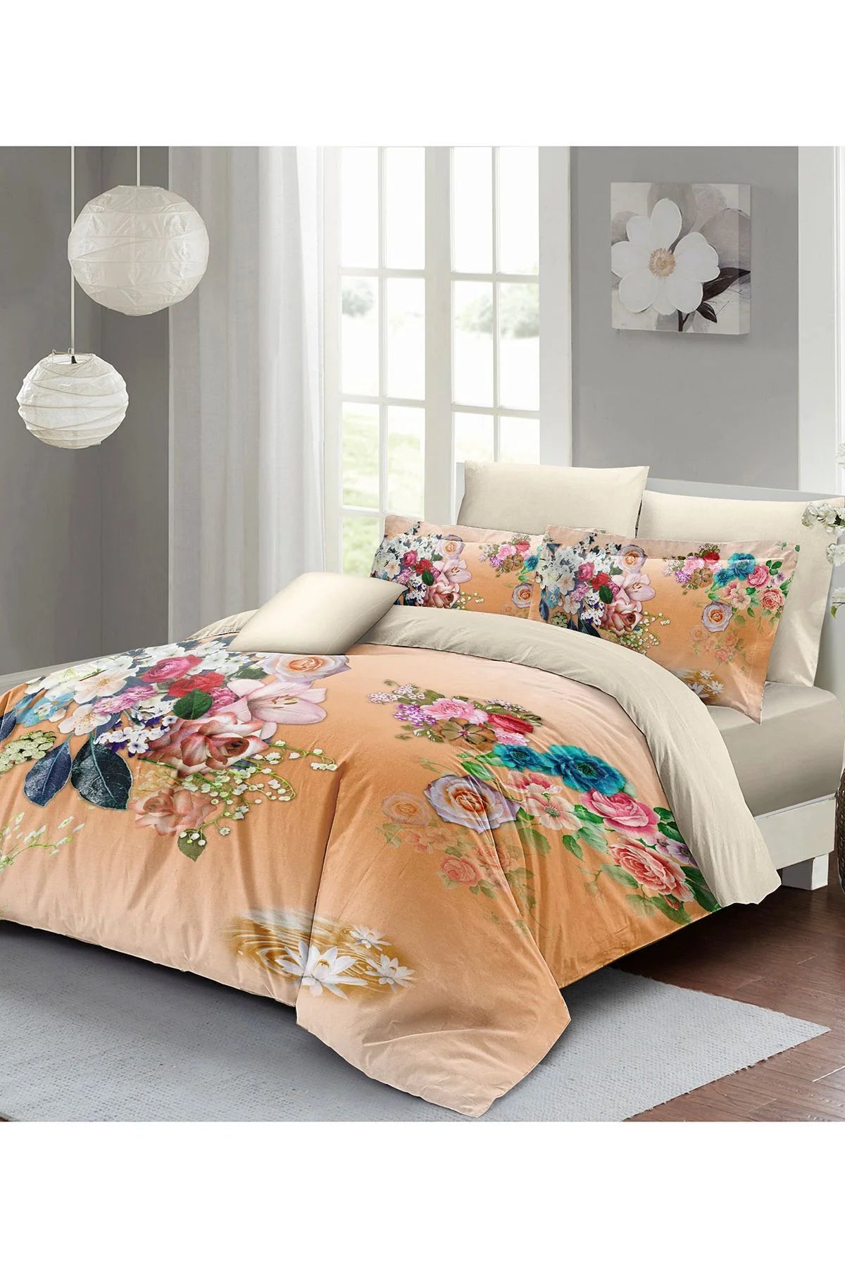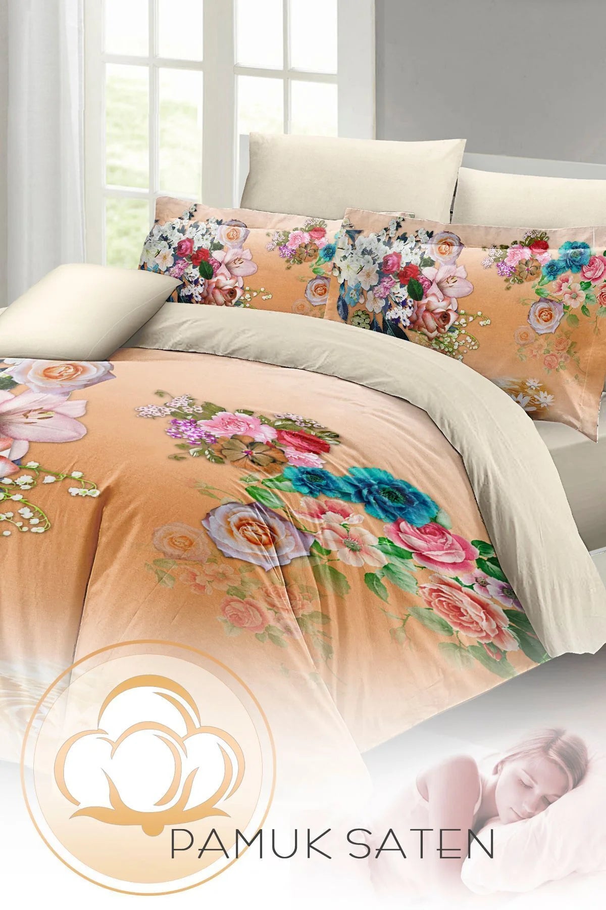 Şeftali Soft Çift Kişilik Nevresim Takımı 3D Pamuk Saten