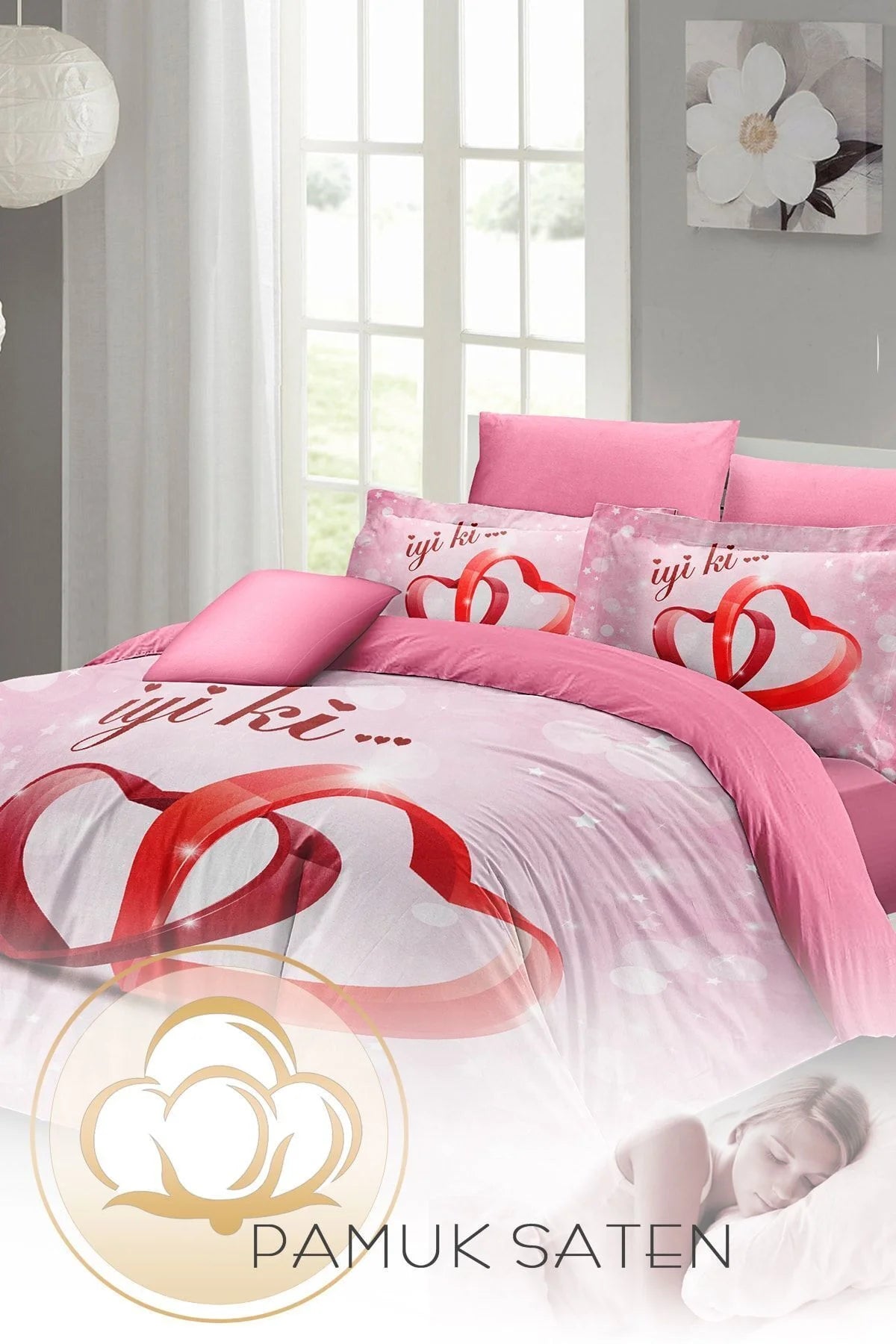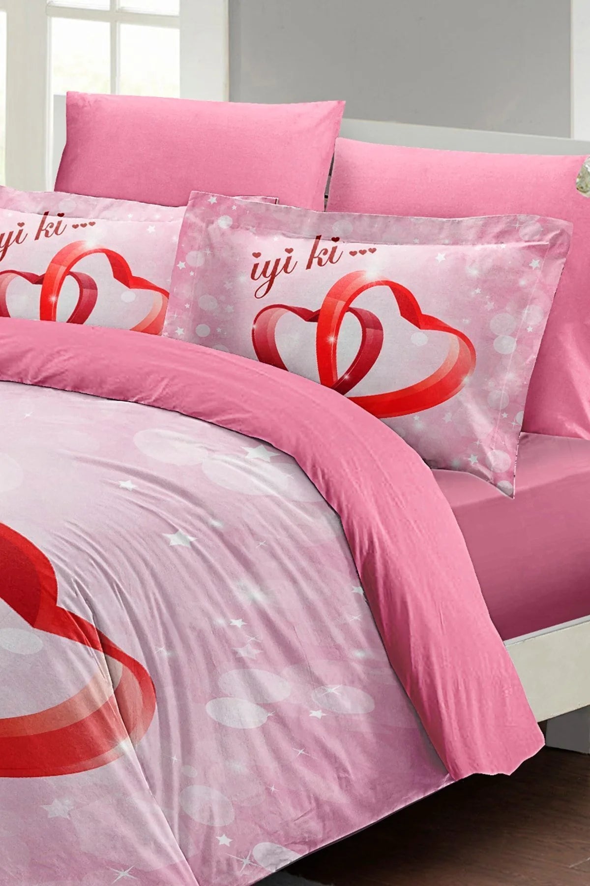 Sevgililer Günü Çift Kişilik Nevresim Takımı%100 Pamuk Saten Iyi Ki Sen