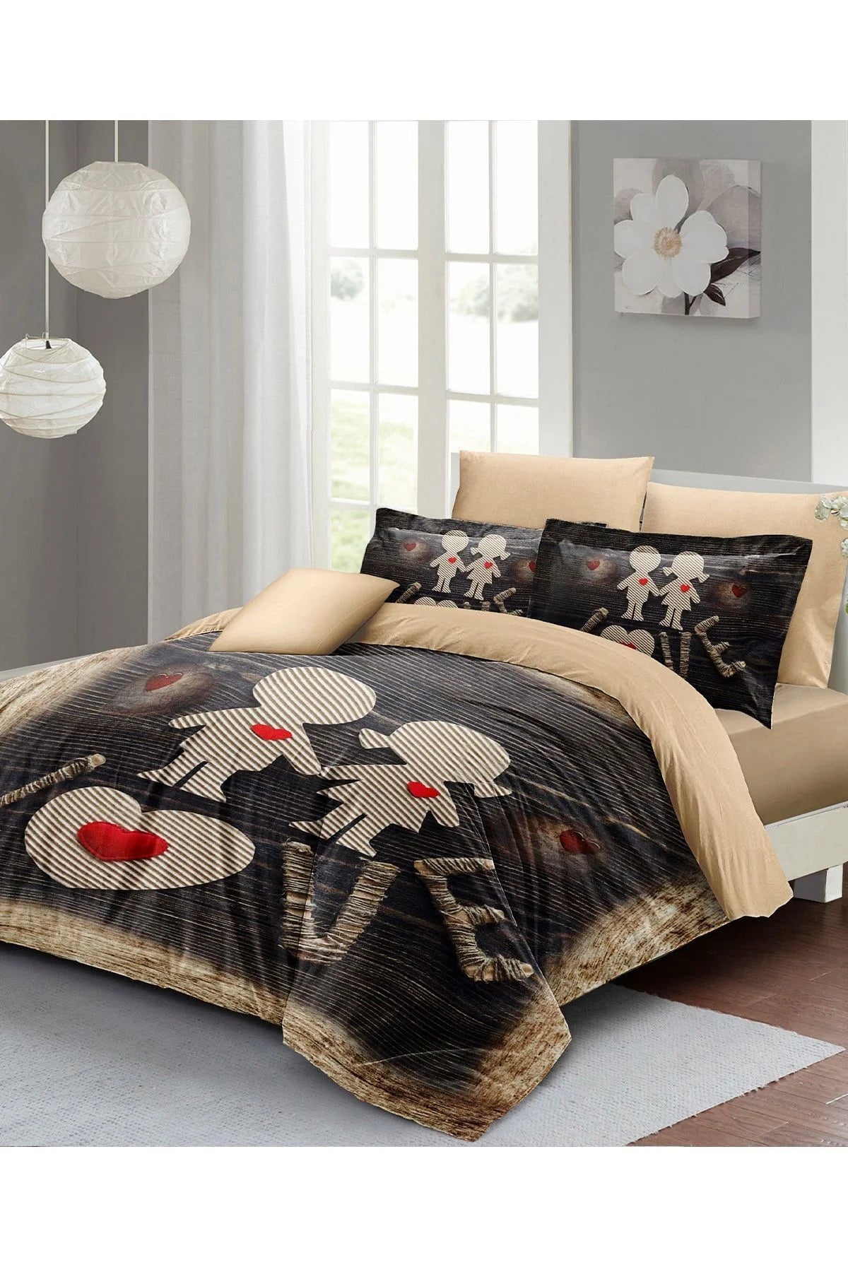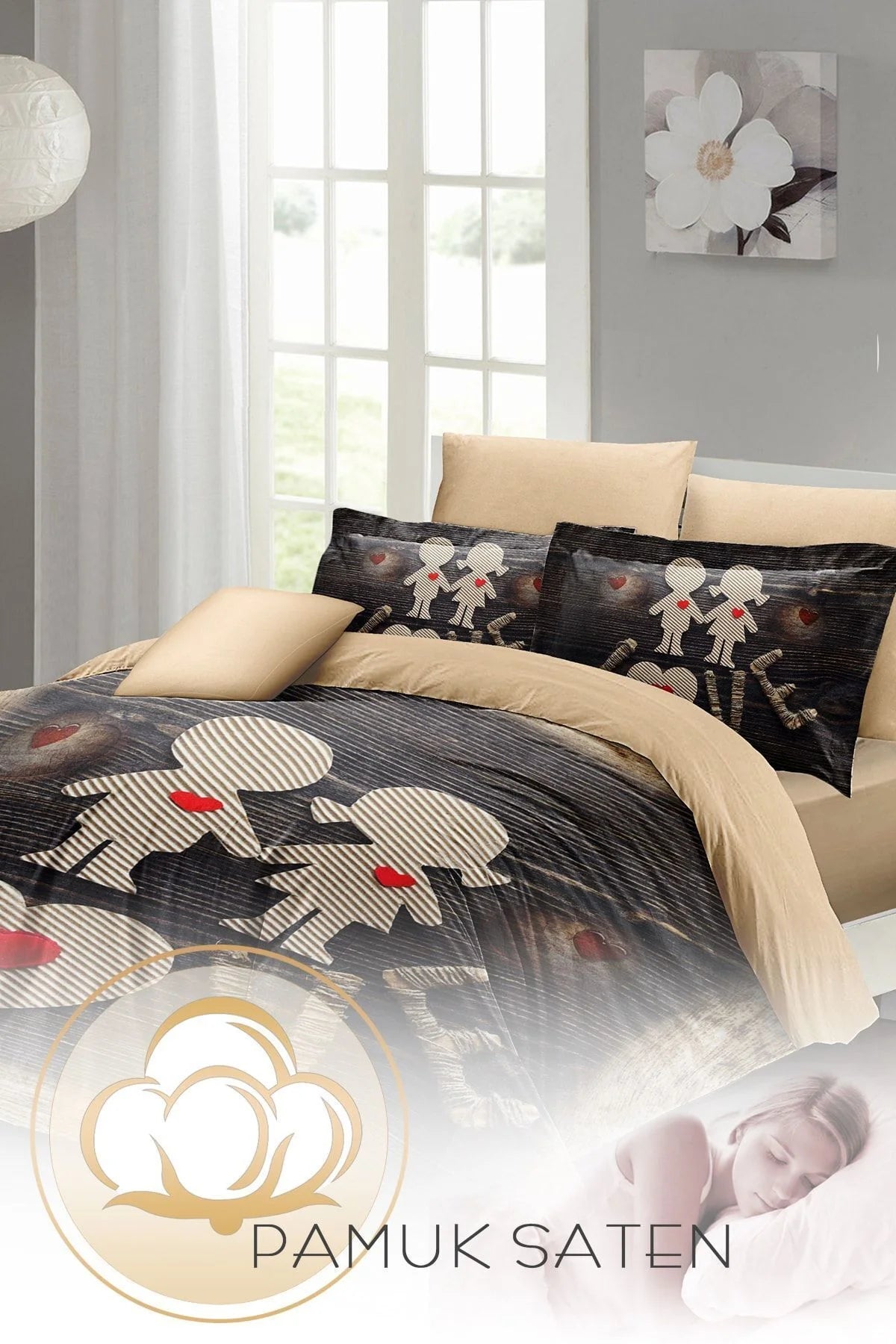Sevgililer Günü Çift Kişilik Nevresim Takımı%100 Pamuk Saten Kalbim Sende