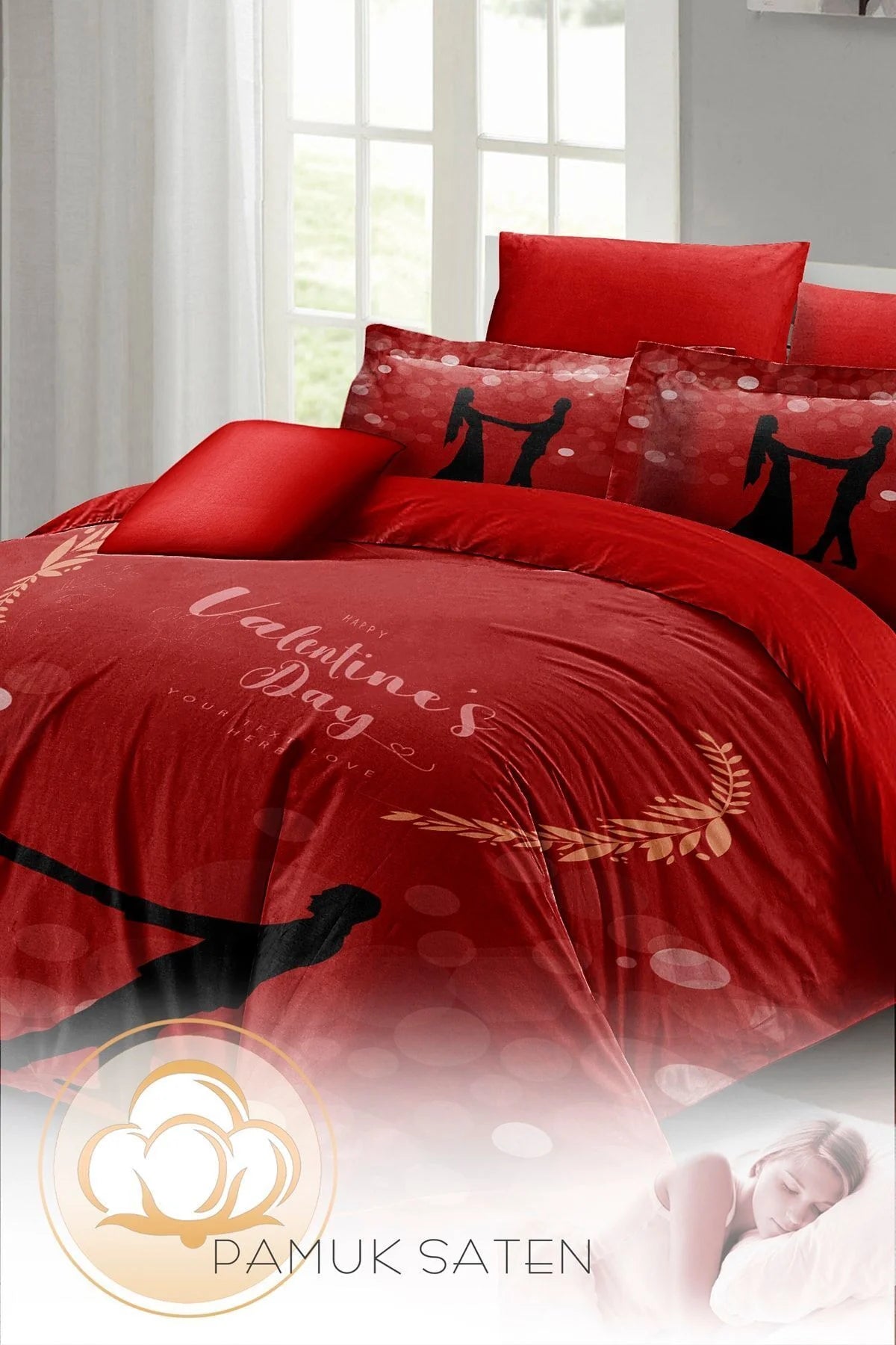 Sevgililer Günü Çift Kişilik Nevresim Takımı%100 Pamuk Saten Valentine's Day