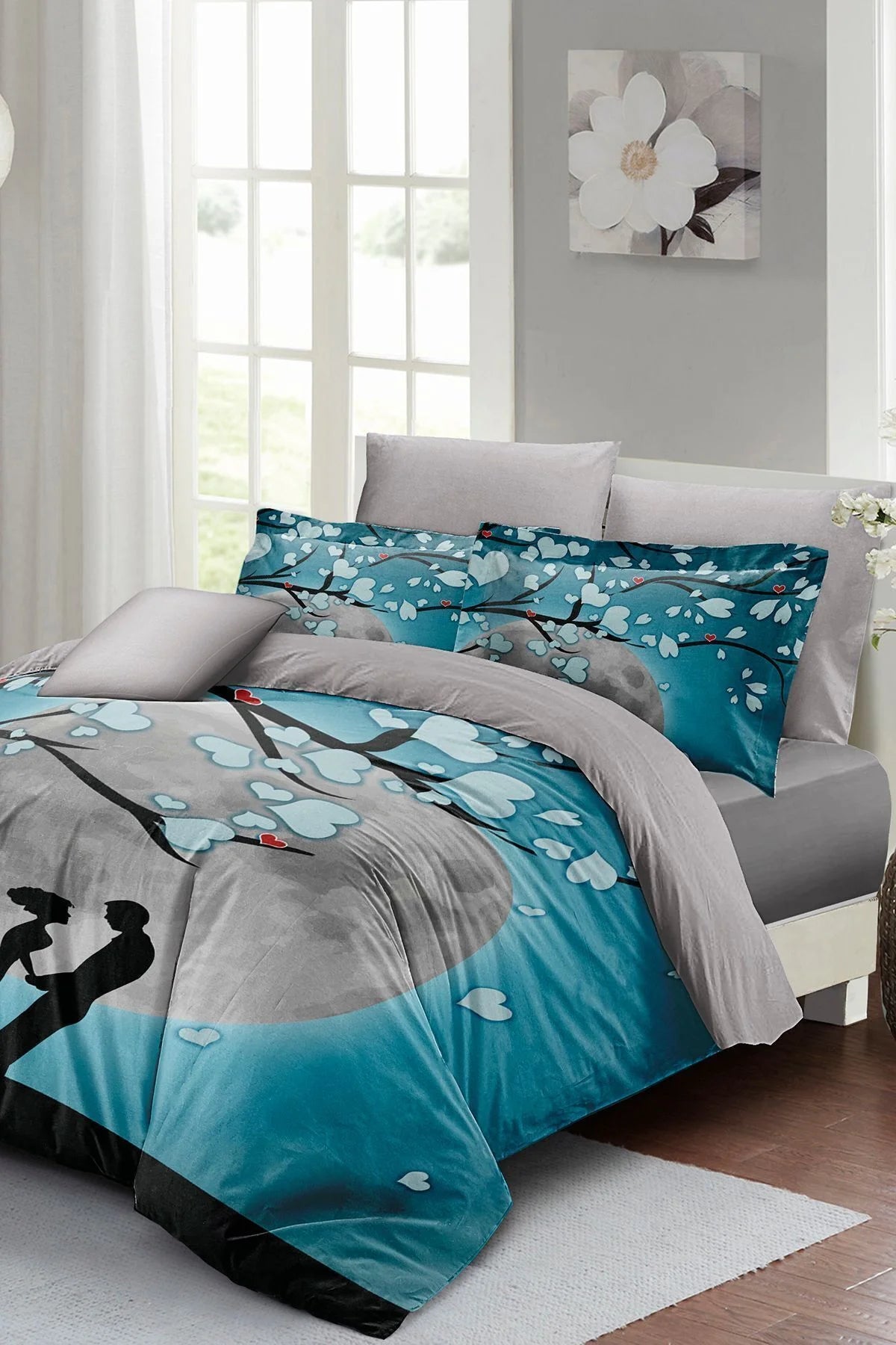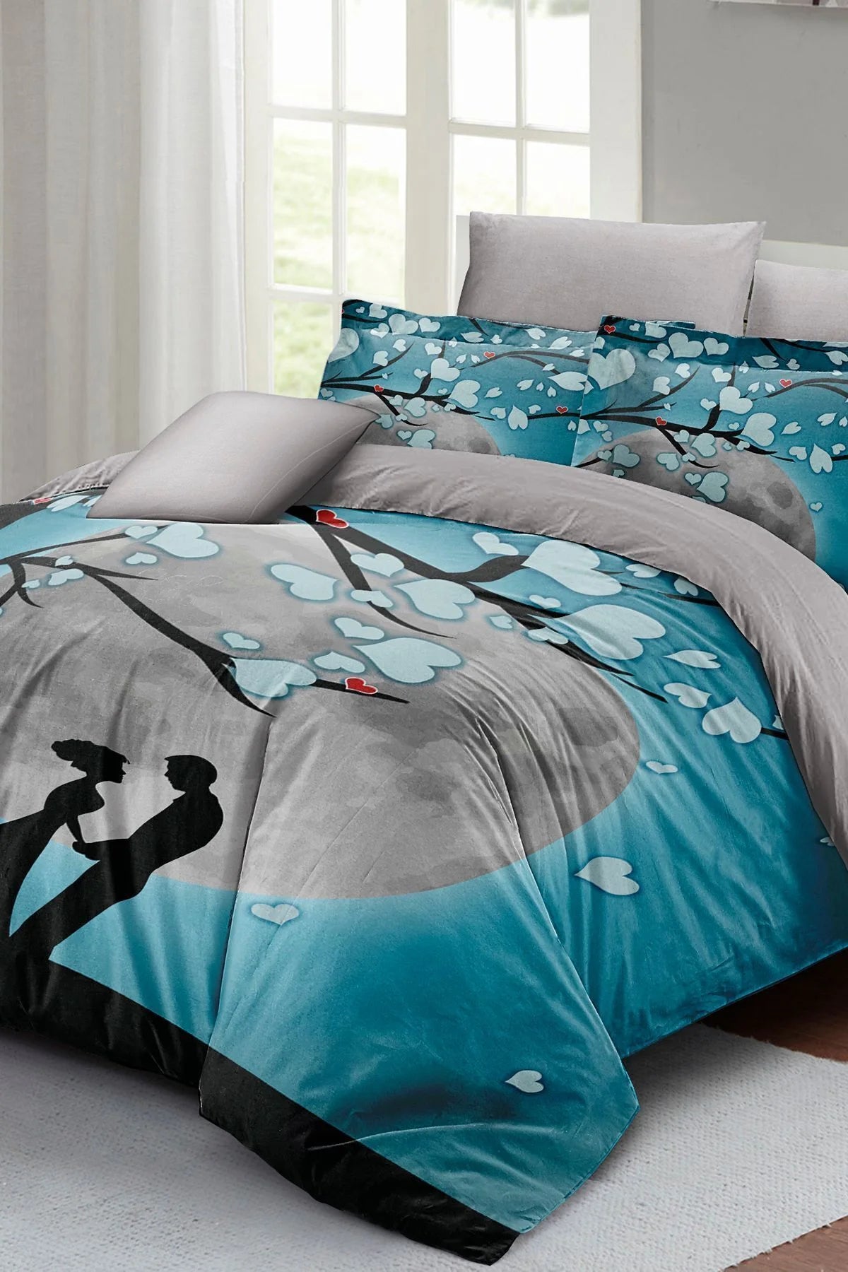 Sevgililer Günü Özel Çift Kişilik Nevresim Takımı Pamuk Saten Blue Dream