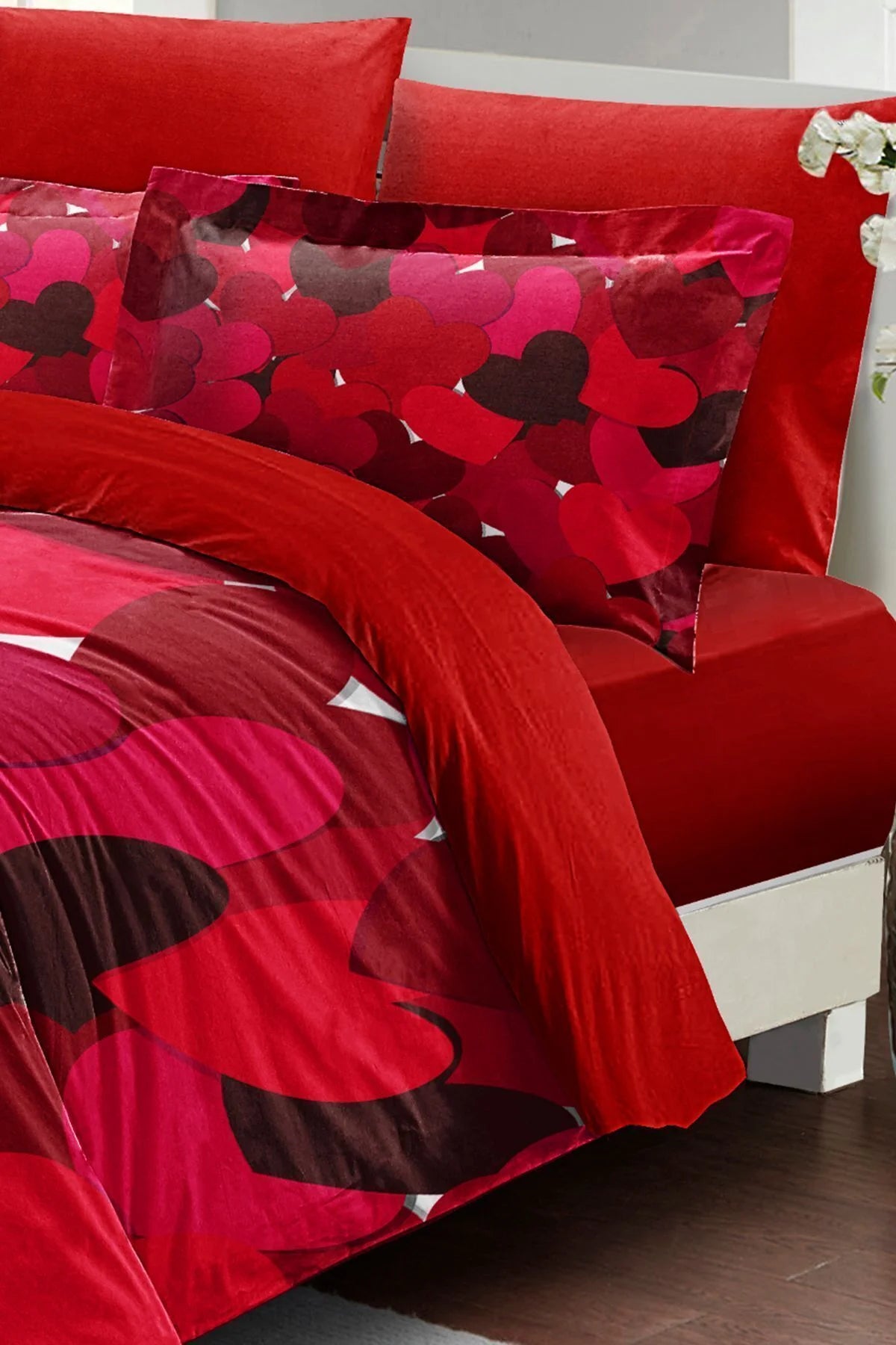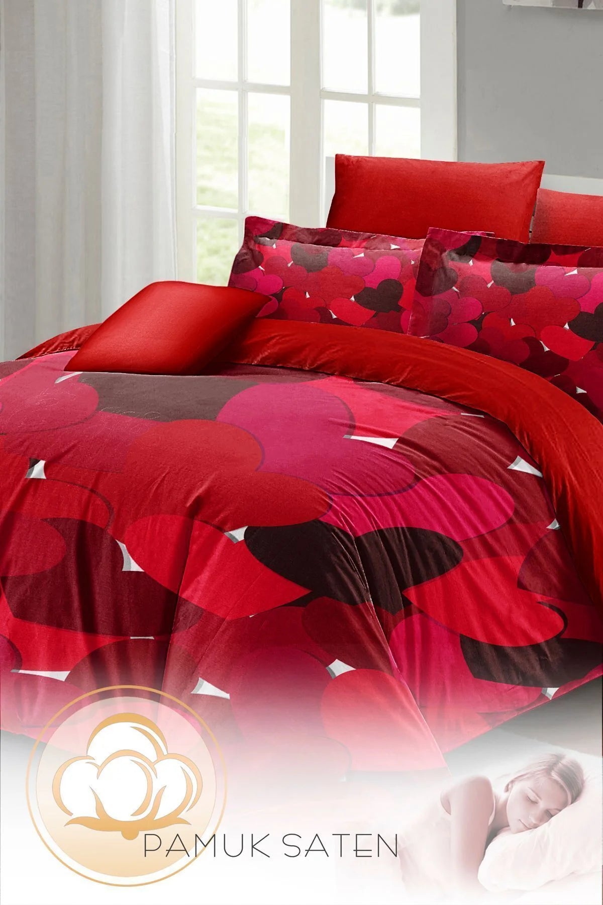 Sevgililer Günü Özel Çift Kişilik Nevresim Takımı Pamuk Saten Kırmızı Aşkına