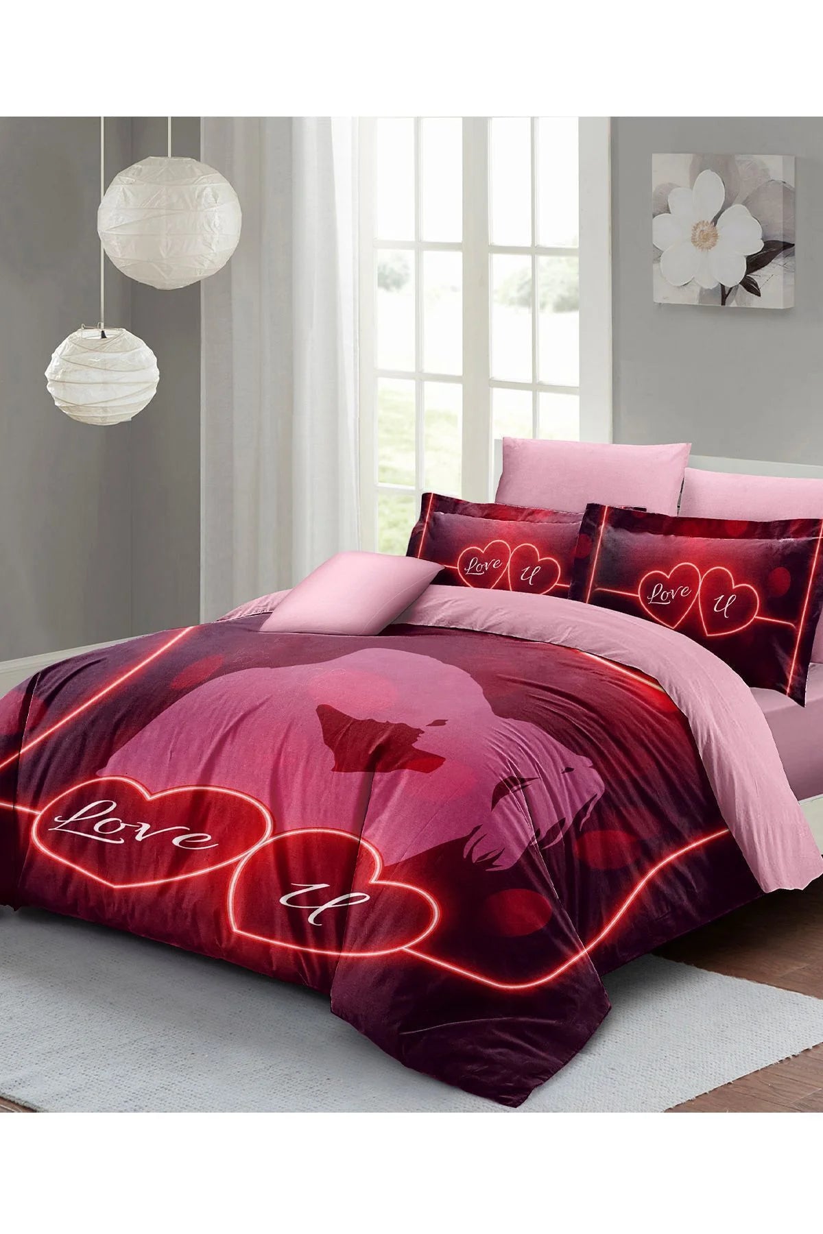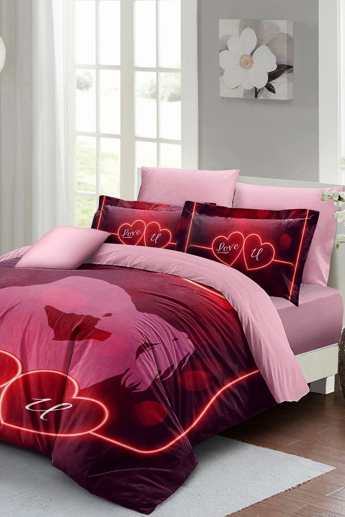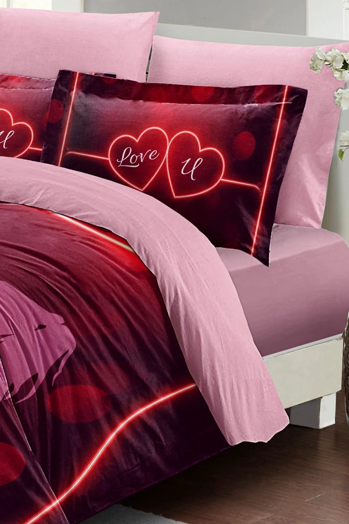 Sevgililer Günü Özel Çift Kişilik Nevresim Takımı Pamuk Saten Love U
