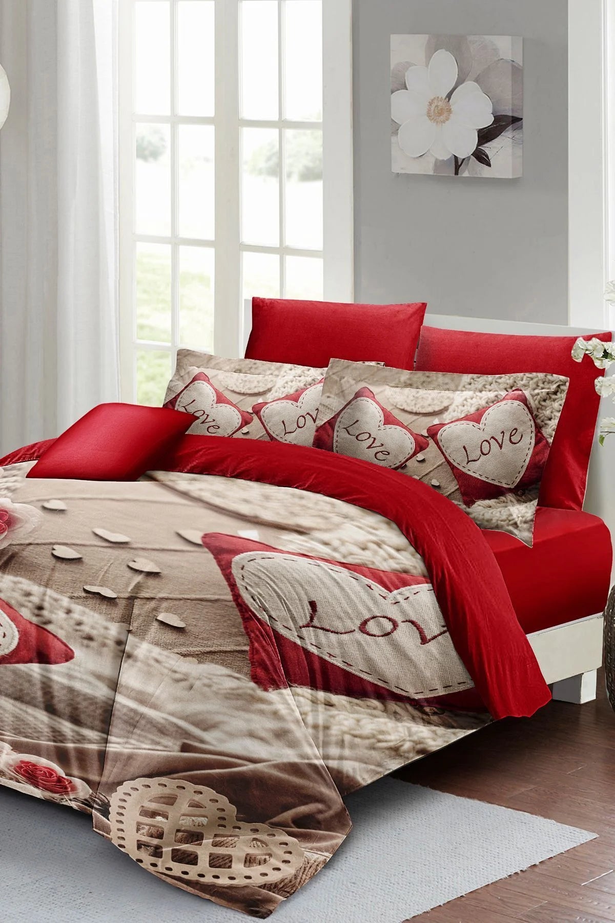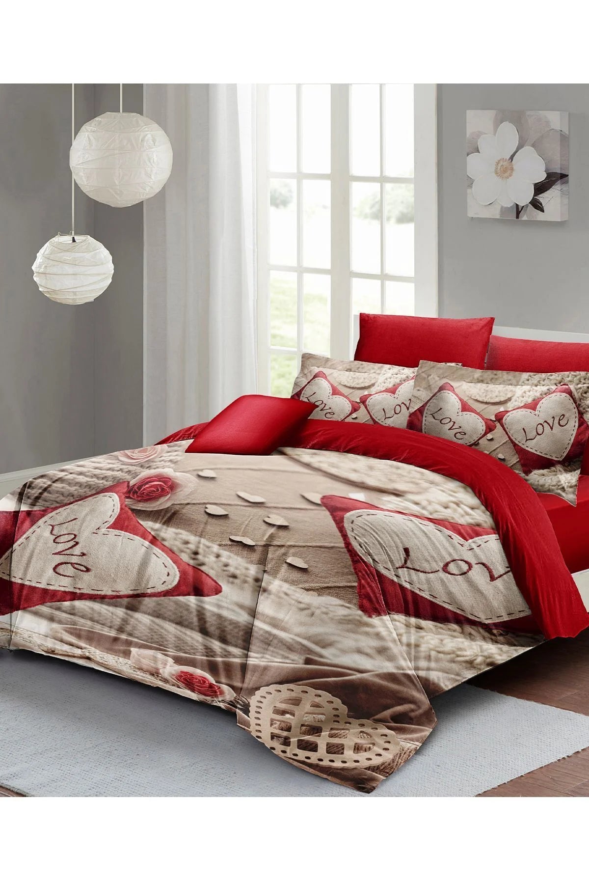 Sevgililer Günü Özel Çift Kişilik Nevresim Takımı Pamuk Saten Memory Love