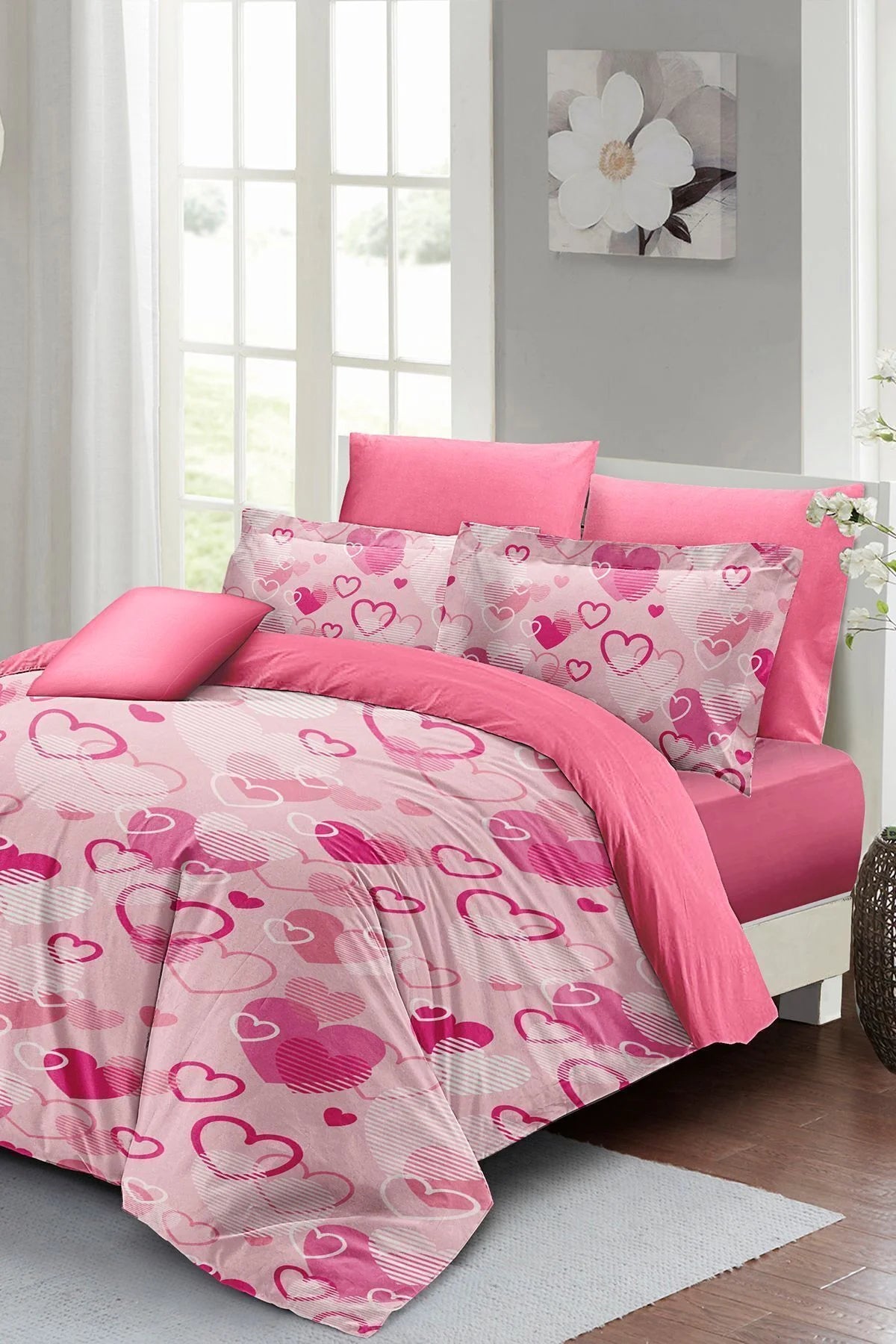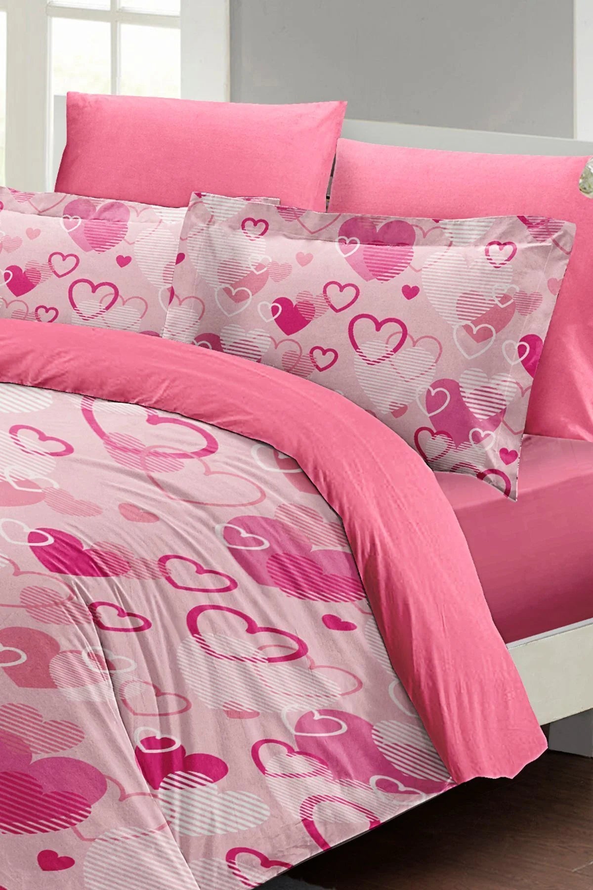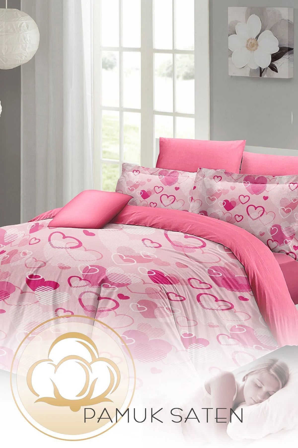 Sevgililer Günü Özel Çift Kişilik Nevresim Takımı Pamuk Saten Stay Pink