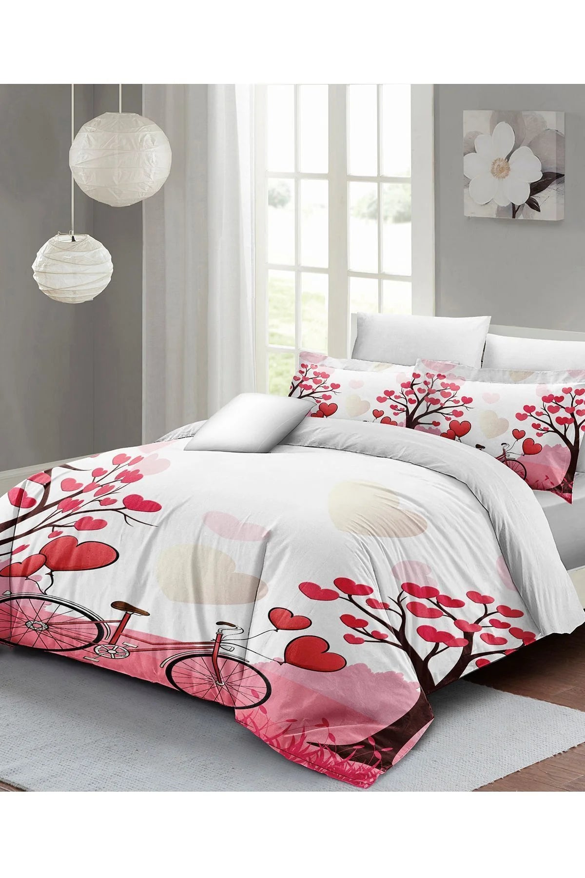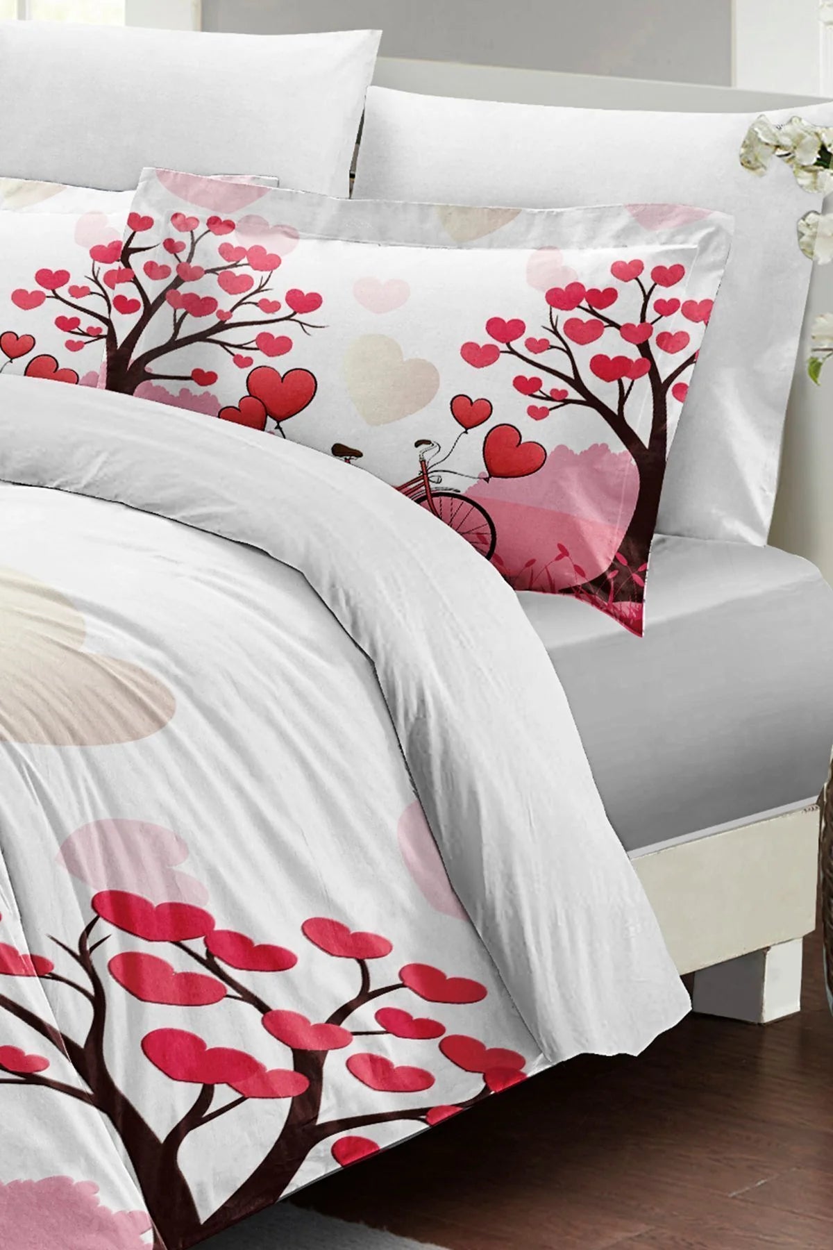 Sevgililer Günü Özel Çift Kişilik Nevresim Takımı Pamuk Saten White Love