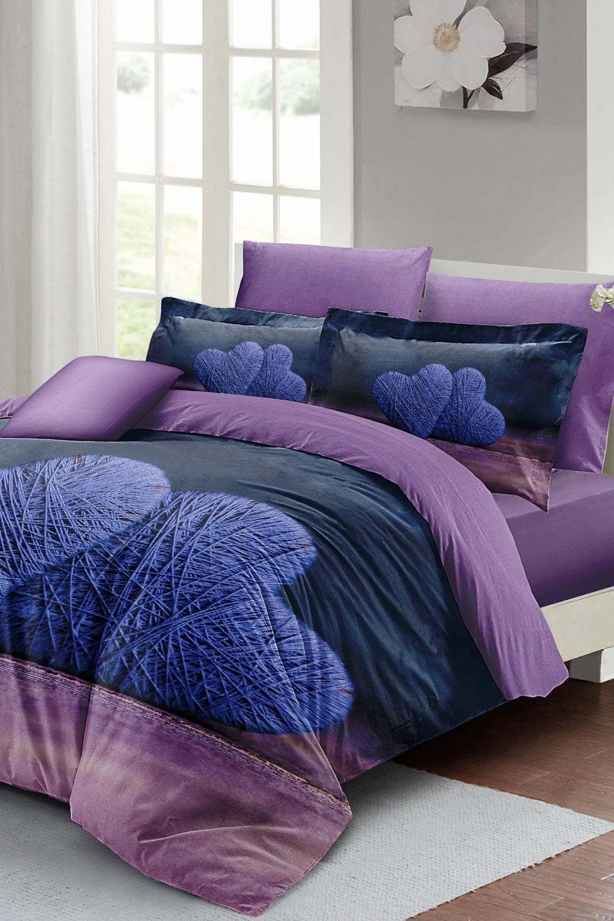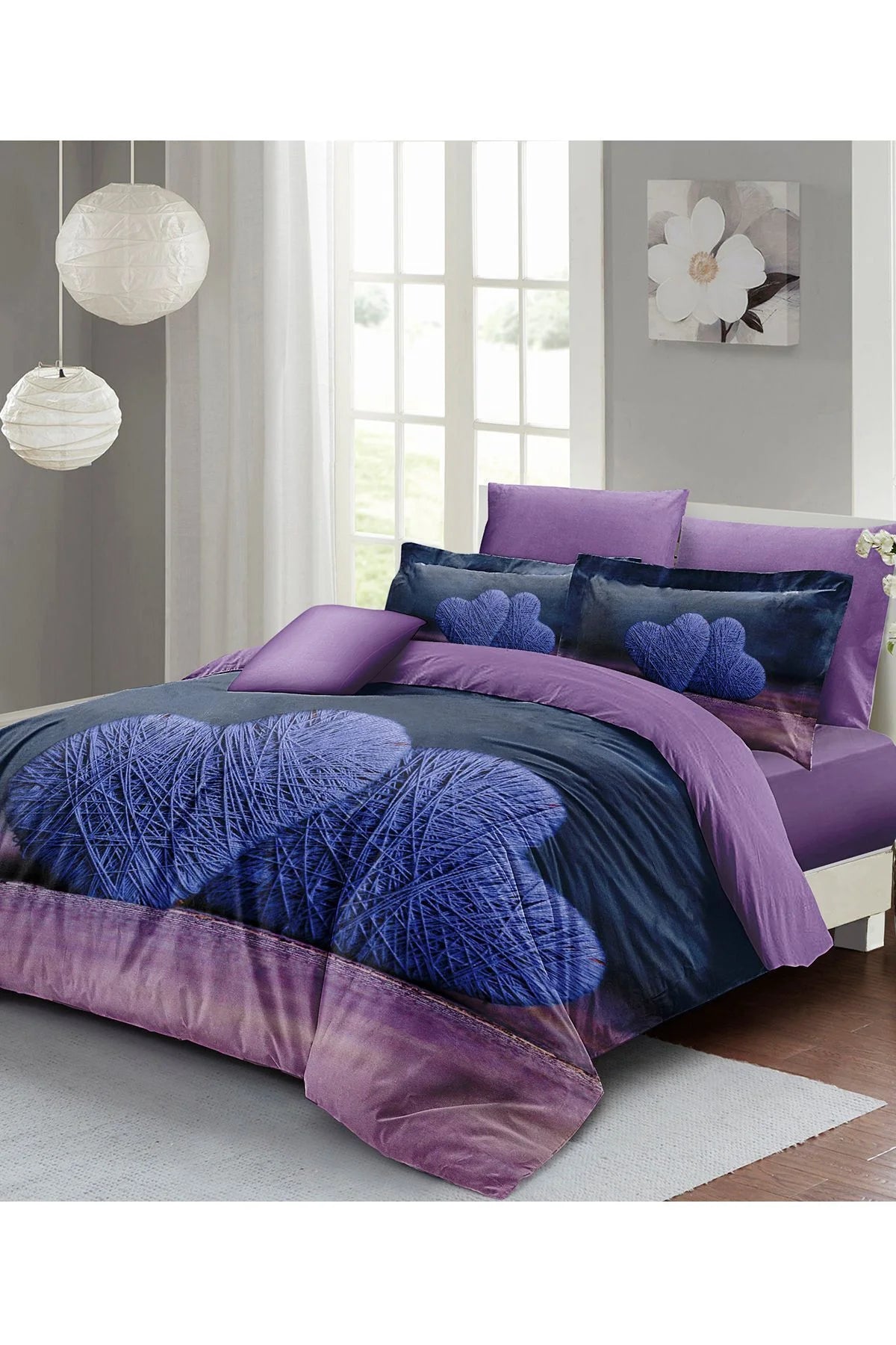 Sevgililer Günü Özel Çift Kişilik Nevresim Takımı Pamuk Saten Wool Heart