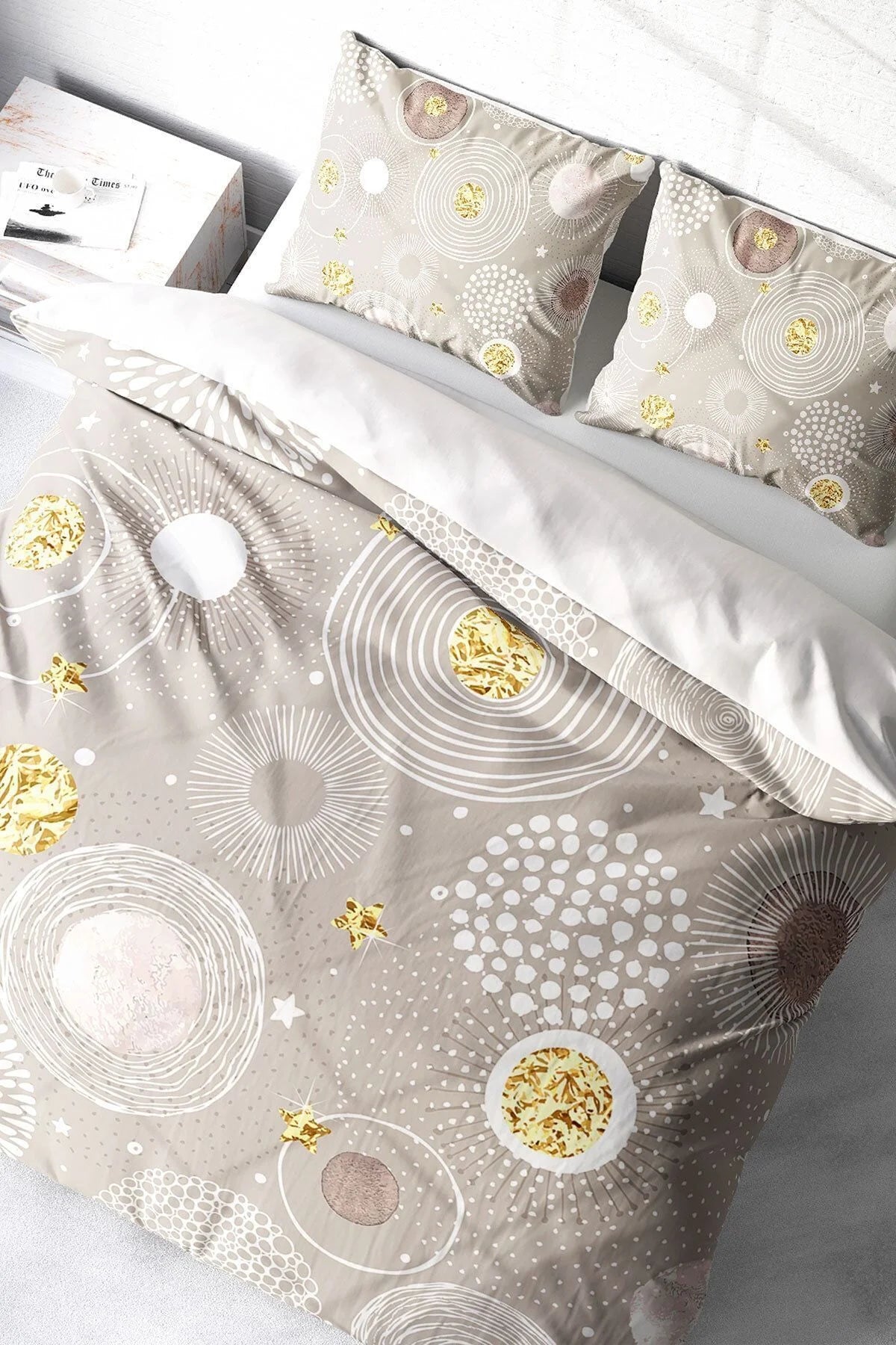 Soft Circles 3D Pamuk Saten Çift Kişilik Nevresim Takımı