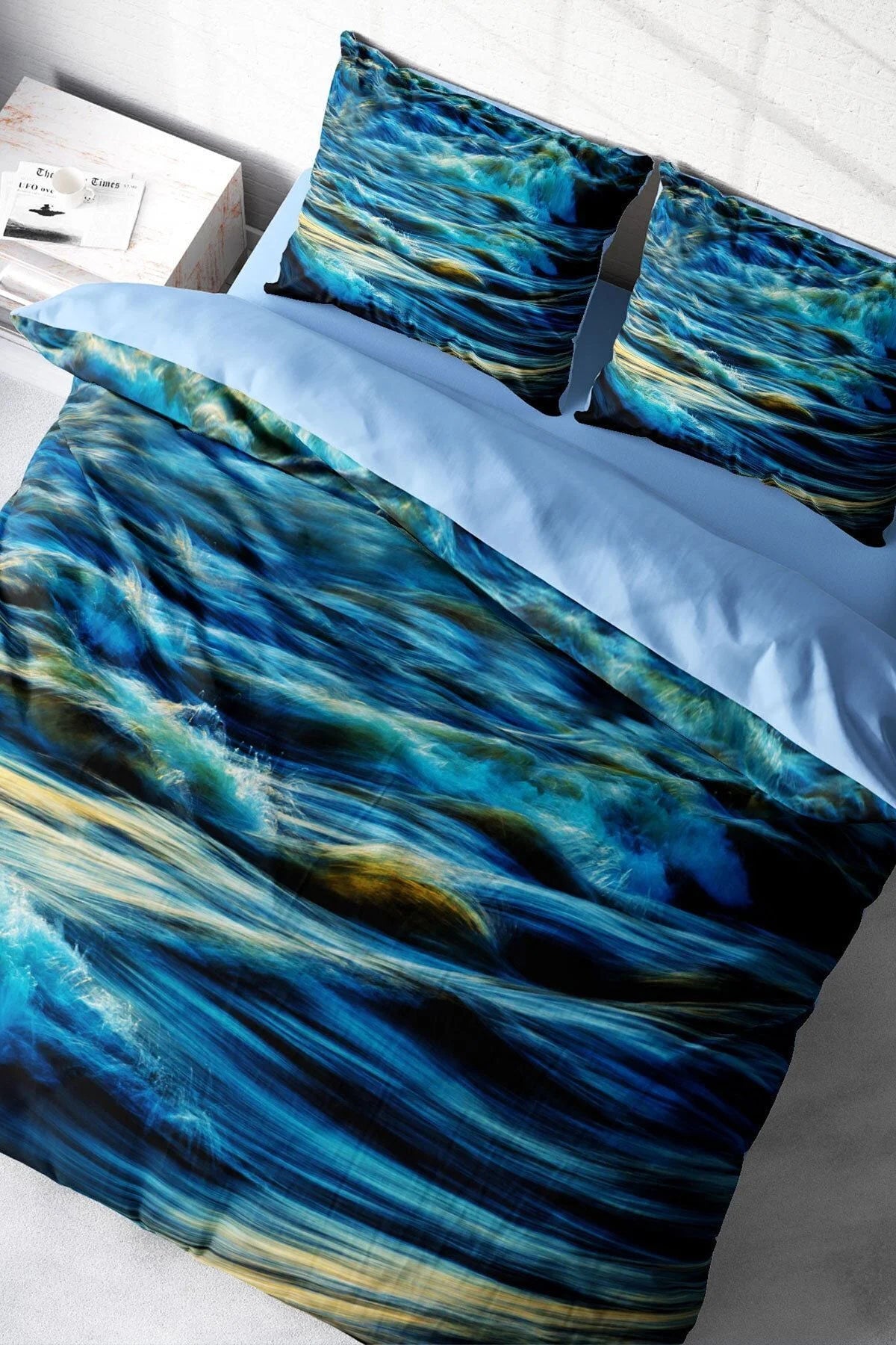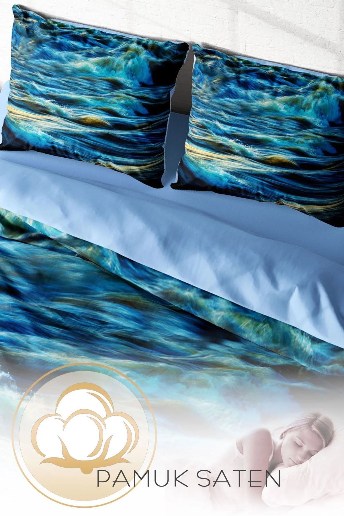 Wavy Sea 3D Pamuk Saten Çift Kişilik Nevresim Takımı