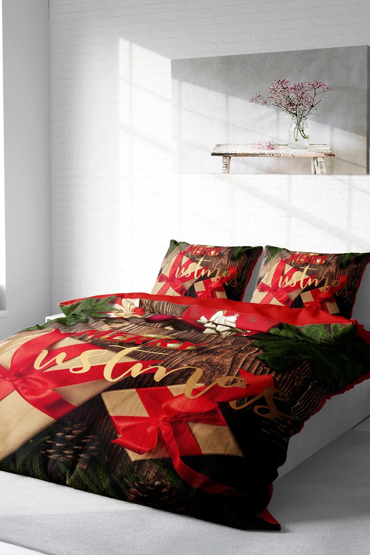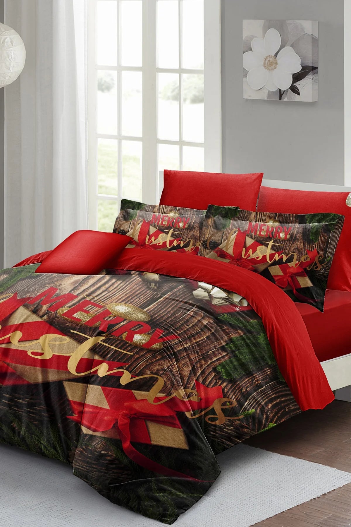 Yılbaşı Merry Christmas Çift Kişilik 3D Nevresim Takımı Pamuk Saten Gift