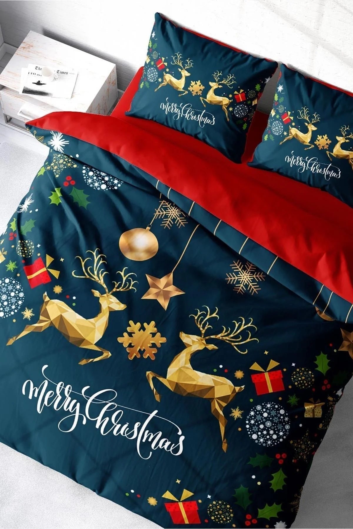 Yılbaşı Nevresim Takım %100 Doğal Pamuk Merry Christmas Çift Kişilik Dark Deer