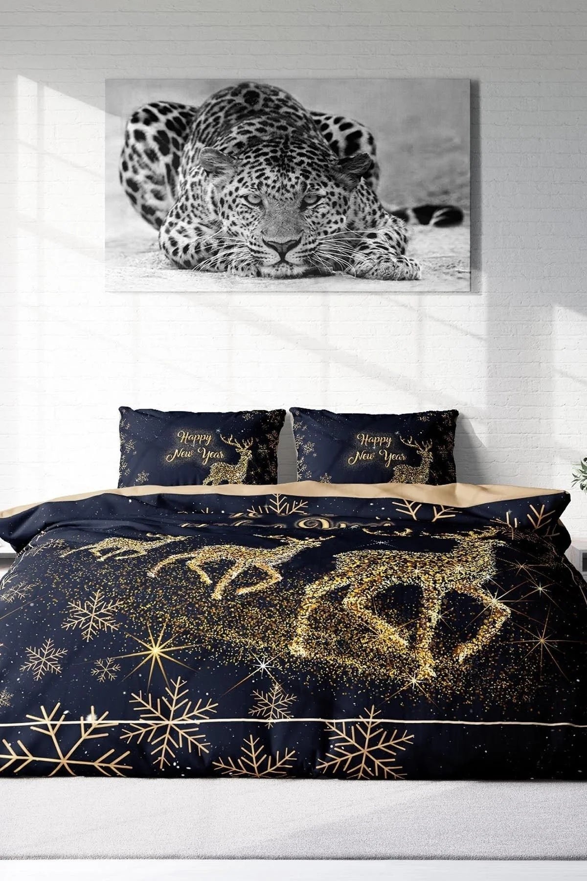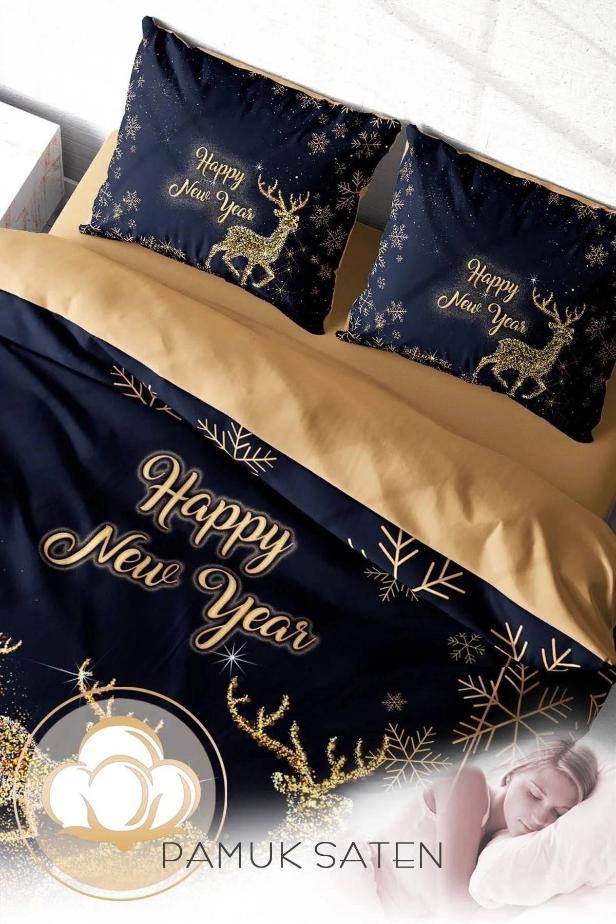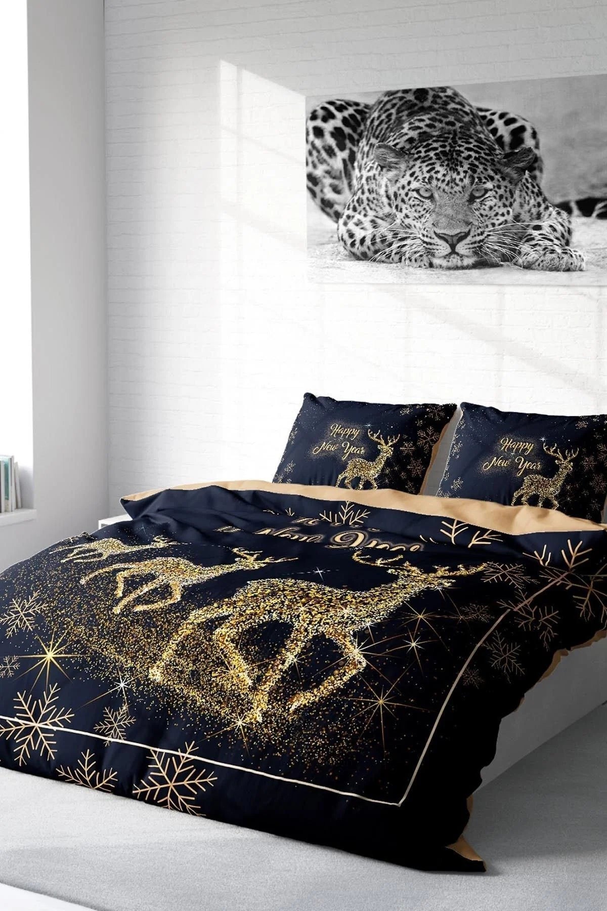 Yılbaşı Nevresim Takım %100 Doğal Pamuk Merry Christmas Çift Kişilik Geyik