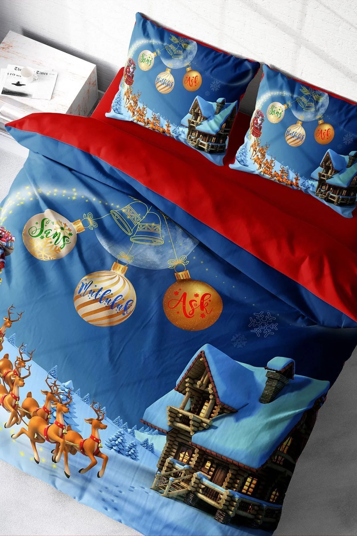 Yılbaşı Nevresim Takımı Ny Wish 3D Dijital Baskılı Çift Kişilik Nevresim Takımı