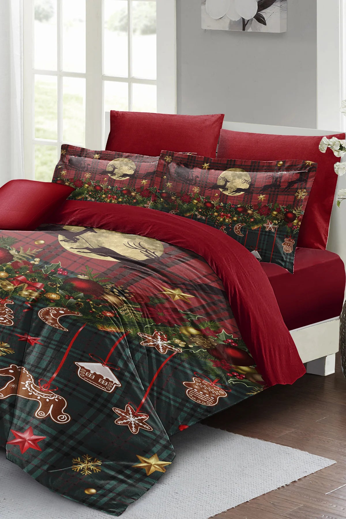 Yılbaşı Nevresim Takımı Özel Tasarım Pamuk Saten 3D Dijital Christmas Decorations